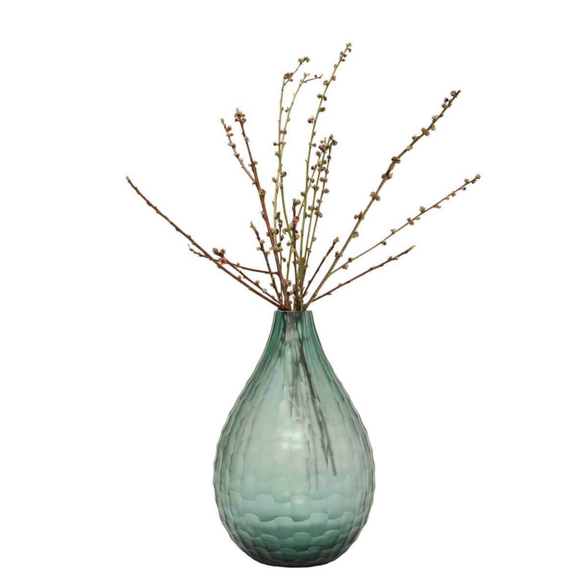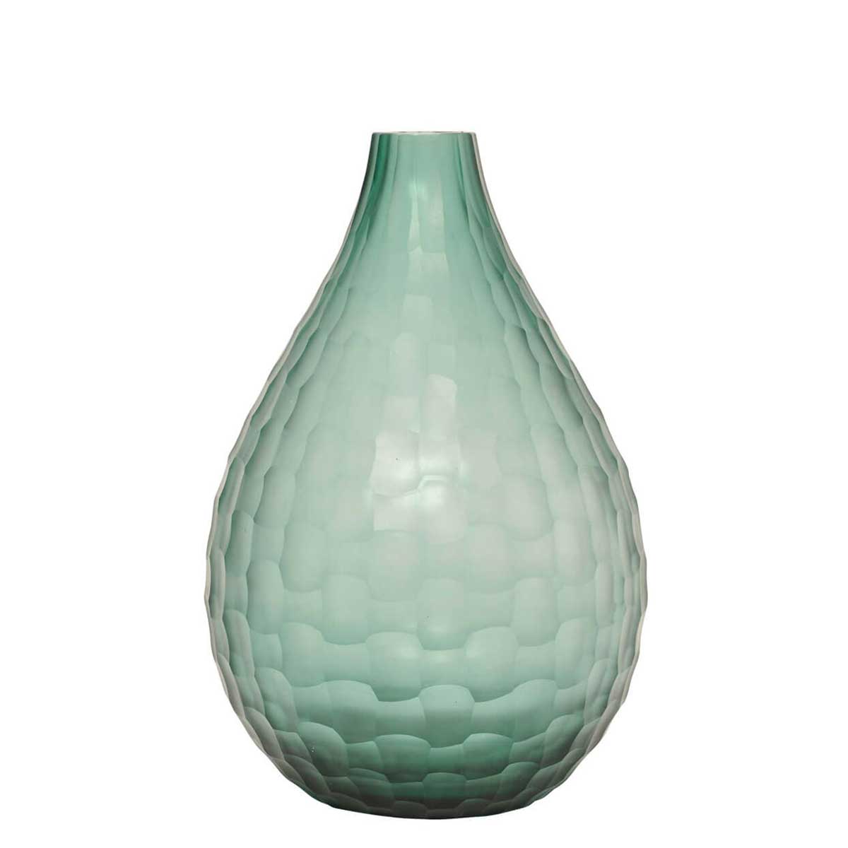 Gentle ripples provide the delightful pattern for the lovely Lyric Vase. The hand-cut blown glass vessel is fashioned from agave-colored glass in a pleasing silhouette.