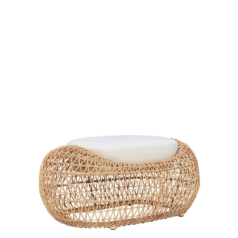 As a companion to Balou seating, the Balou Ottoman Interior offers exceptional comfort and an invitation to ultimate relaxation. An organic, bean-shaped frame is crafted in powder coated steel over which natural wicker fiber is woven in an open, geometric pattern.