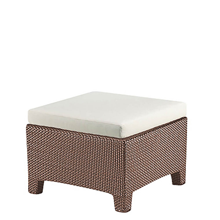 The Barcelona Ottoman is made with handwoven fiber on a powder coated aluminum frame.