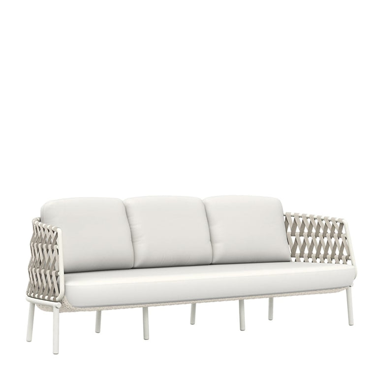 Designed by the award-winning Sebastian Herkner, the Boheme collection features elegantly entwined dual-toned fibers in dazzling geometric patterns, lustrous tabletops of glazed lava stone, and coordinating LED lanterns which emit intriguing plays of shadow and light from their teardrop silhouettes.