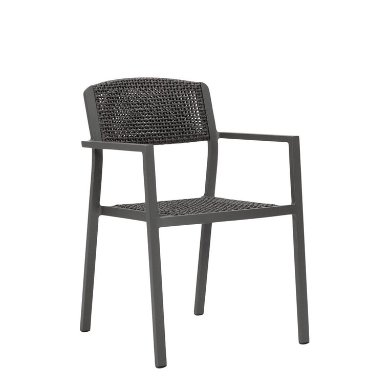 The Conic Stackable Armchair is constructed of a slender, powder coated aluminum frame and a seat and back of intricately woven, olefin rope. The armchair’s contrast of textures and slim, graceful silhouette offer refinement and elegance in a small footprint, making it well suited to both residential and commercial settings. Stackable to four and exceptionally weather resistant, Conic is as ideal for poolside as it is for outdoor cafés and rooftop lounges. An optional seat cushion is available for separate purchase.