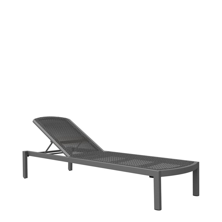 The Conic Stackable Chaise Lounge is constructed of a slender, powder coated aluminum frame and a seat and back of intricately woven olefin rope. Exceptionally weather resistant, the chaise features rear wheels and can be adjusted to 2 positions. The Conic Chaise Lounge is stackable to four. An optional cushion is available for separate purchase.