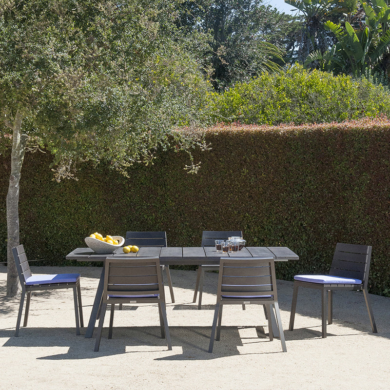 Designed by Paola Navone, the Dolce Vita collection modernizes Mediterranean loggia furnishings. Featuring classic slat styling and clean lines, these pieces are made from eco-friendly JANUSwood® and durable powder coated aluminum, offering lasting beauty and resilience against environmental factors.