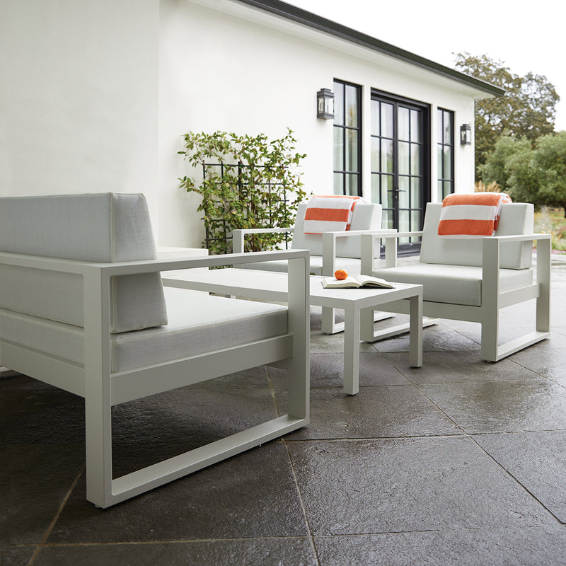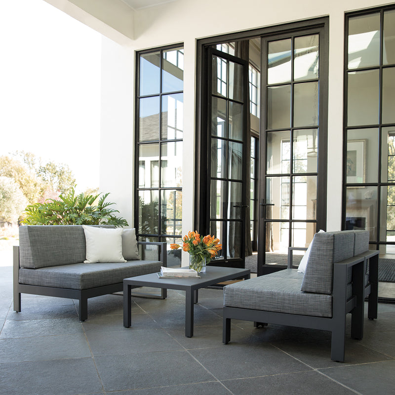 Experience contemporary sophistication with the Duo collection, featuring a range of dining and lounge options. Crafted from durable, powder-coated aluminum, select pieces also feature fade-resistant mesh or sleek aluminum slats. Perfect for both residential and commercial spaces, Duo's clean lines and weatherproof finishes cater to various décor styles.