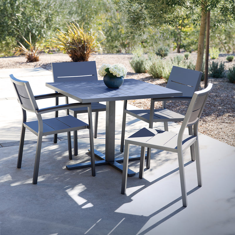 Experience contemporary sophistication with the Duo collection, featuring a range of dining and lounge options. Crafted from durable, powder-coated aluminum, select pieces also feature fade-resistant mesh or sleek aluminum slats. Perfect for both residential and commercial spaces, Duo's clean lines and weatherproof finishes cater to various décor styles.