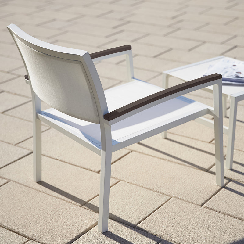 Experience contemporary sophistication with the Duo collection, featuring a range of dining and lounge options. Crafted from durable, powder-coated aluminum, select pieces also feature fade-resistant mesh or sleek aluminum slats. Perfect for both residential and commercial spaces, Duo's clean lines and weatherproof finishes cater to various décor styles.