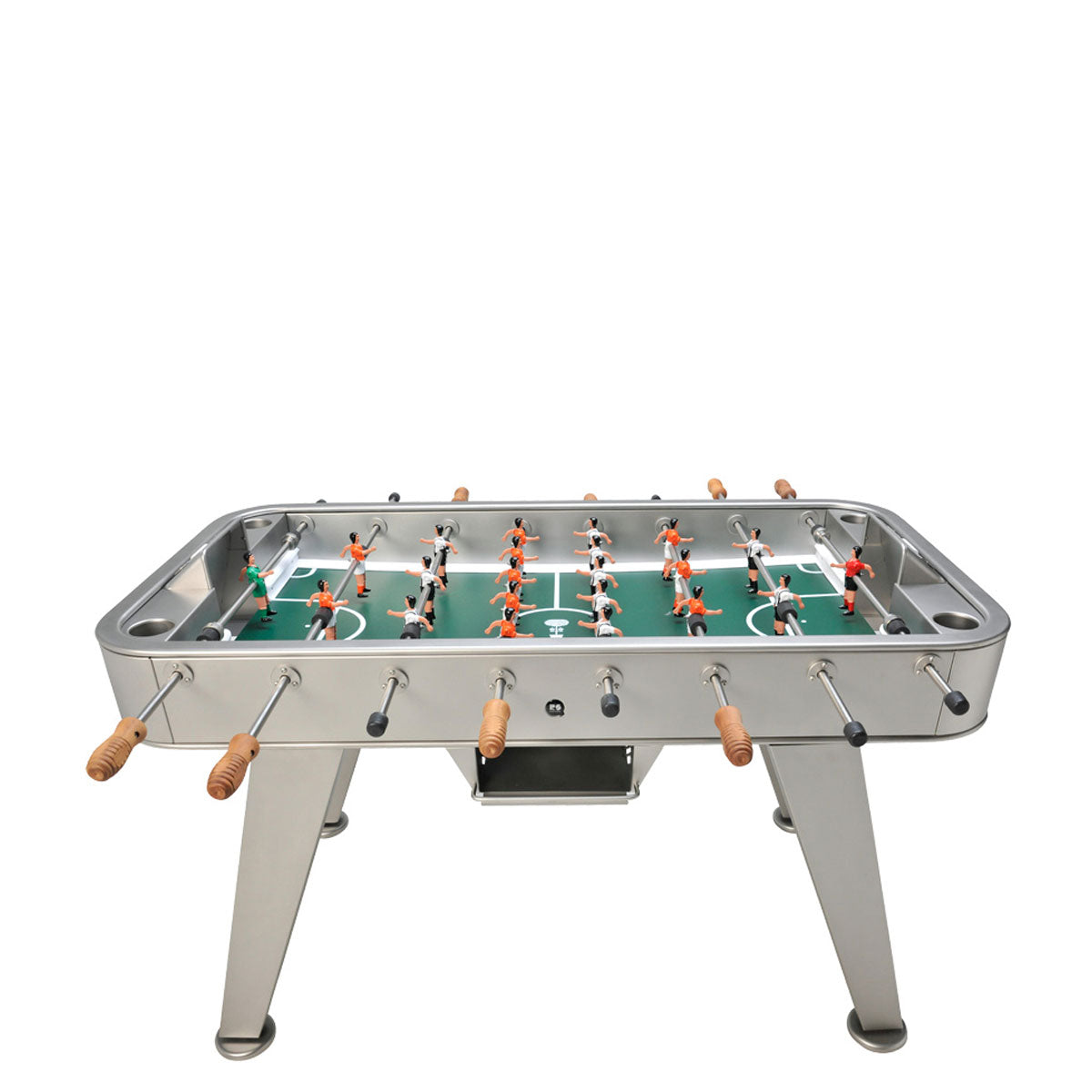 FRAME: TEXTURED POWDER COATED 316 STAINLESS STEEL. INCLUDES 7 BALLS, TOOLS FOR ASSEMBLY, 2 SPARE PLAYERS, Bar Rubber End Protectors and a Protective Cover.