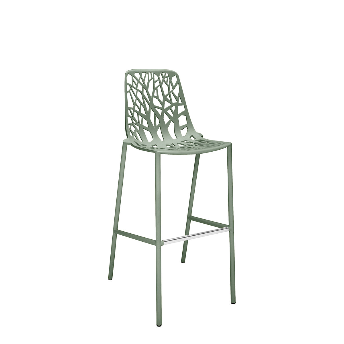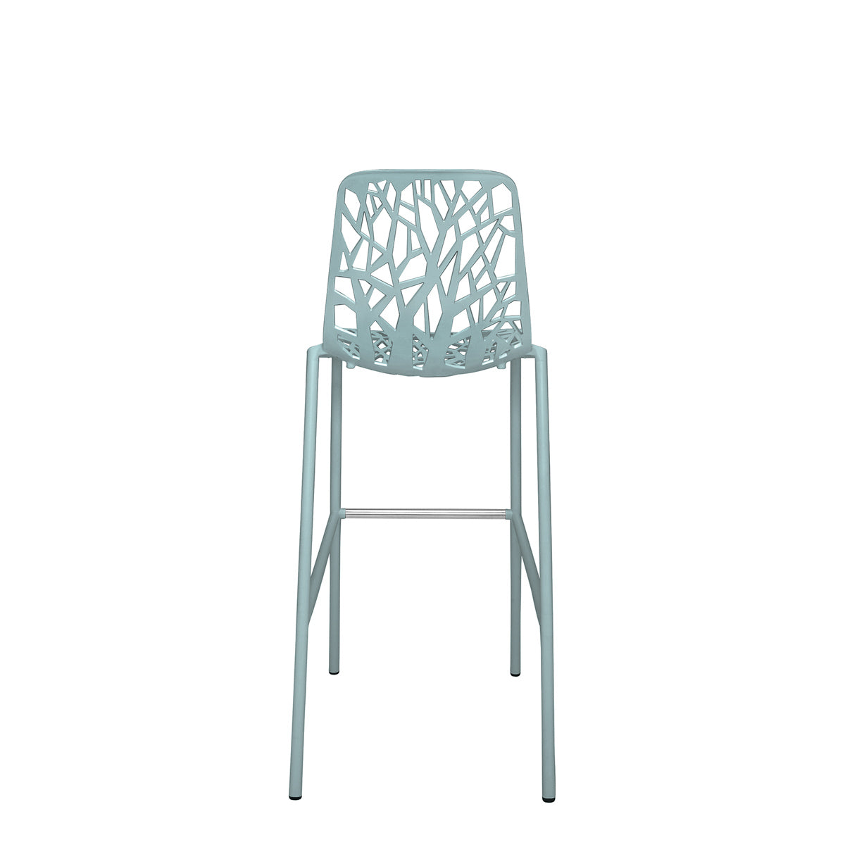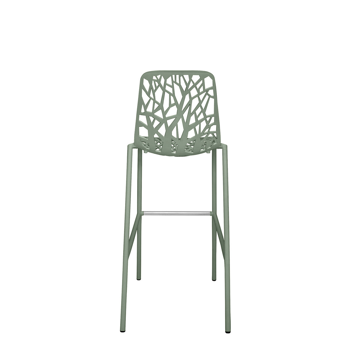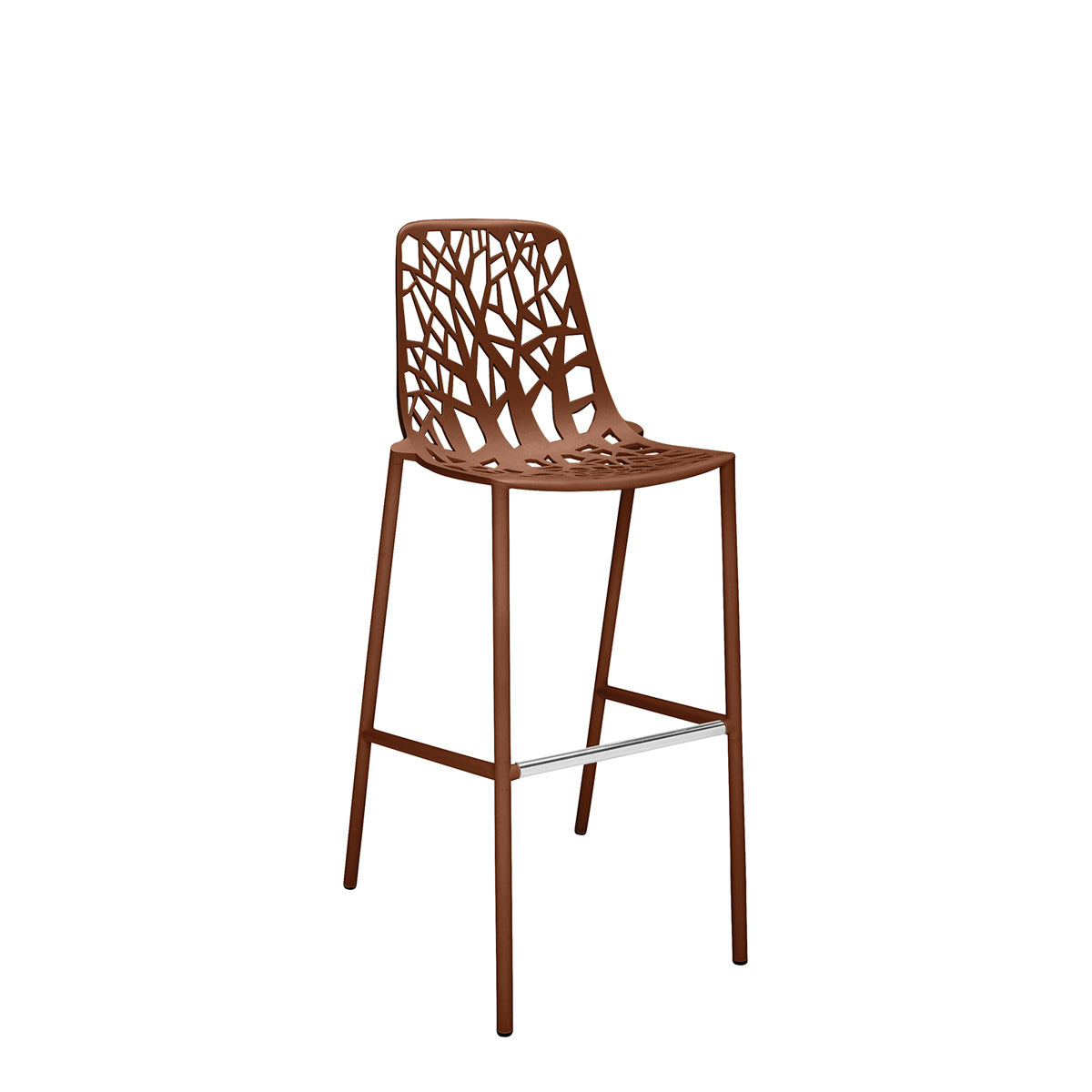 The Forest collection combines modernist elegance with nature-inspired designs. Its powder-coated aluminum structure features seats and backs with die-cut, branch-like patterns. Available in a range of colors, Forest includes armchairs, lounge chairs, stackable side chairs, bar and counter seating, suitable for both vibrant and understated settings.