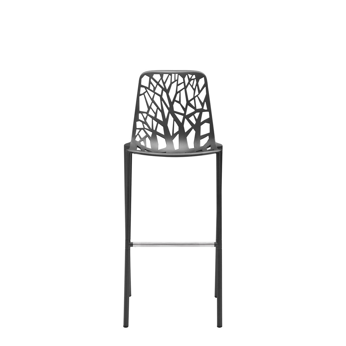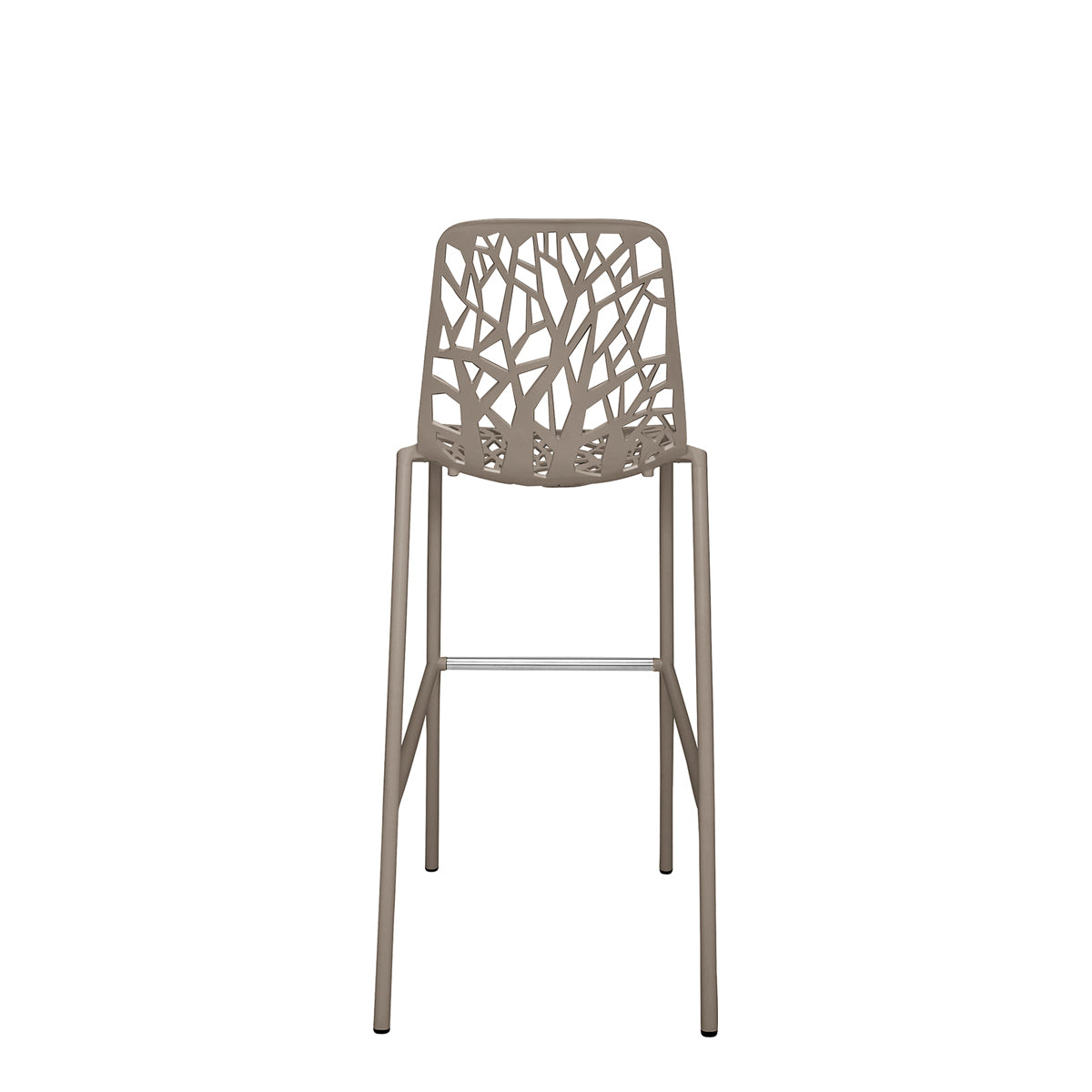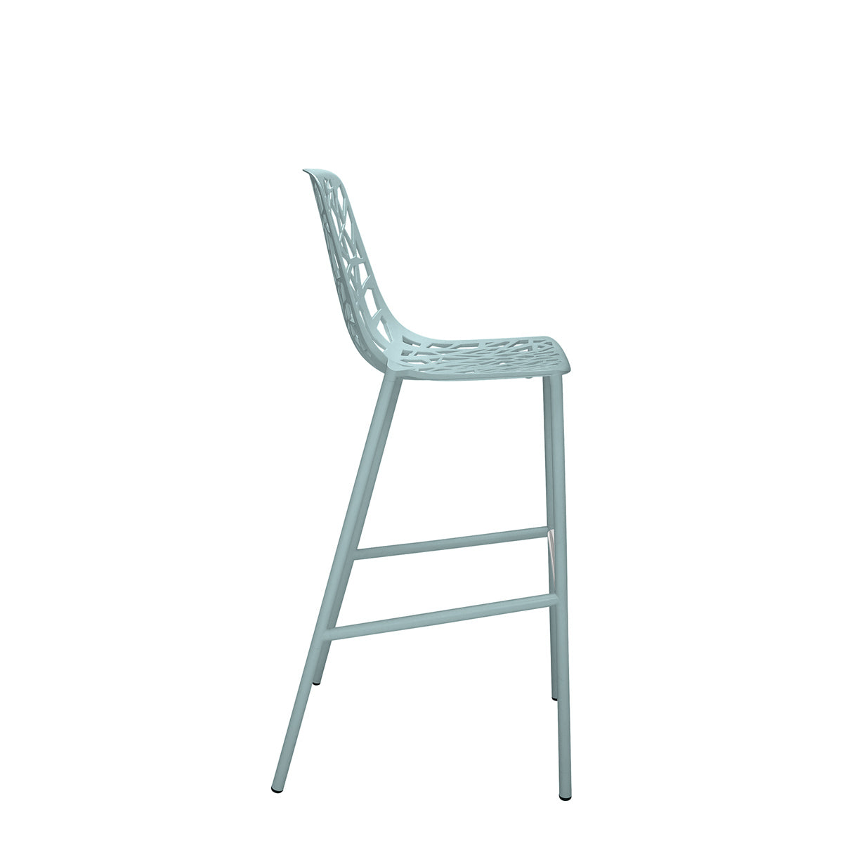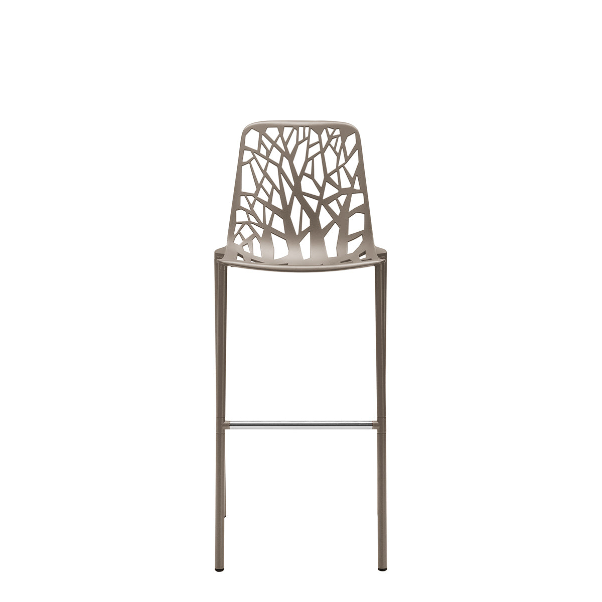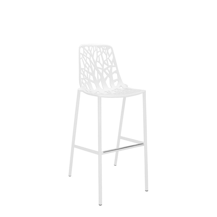 The Forest collection combines modernist elegance with nature-inspired designs. Its powder-coated aluminum structure features seats and backs with die-cut, branch-like patterns. Available in a range of colors, Forest includes armchairs, lounge chairs, stackable side chairs, bar and counter seating, suitable for both vibrant and understated settings.