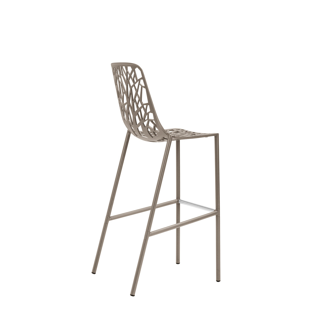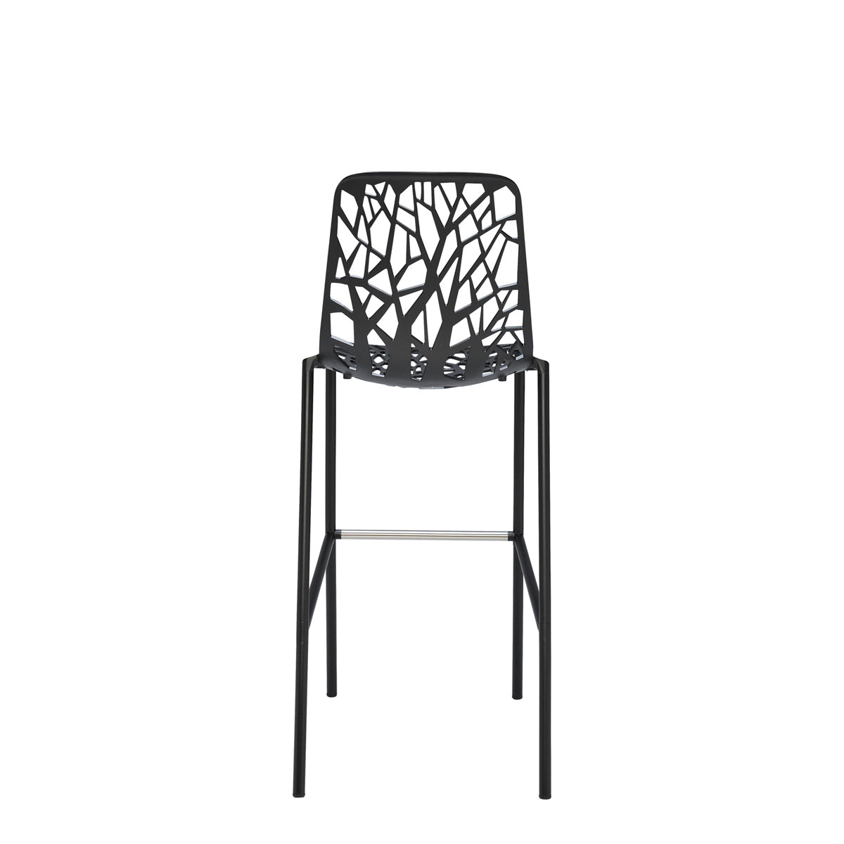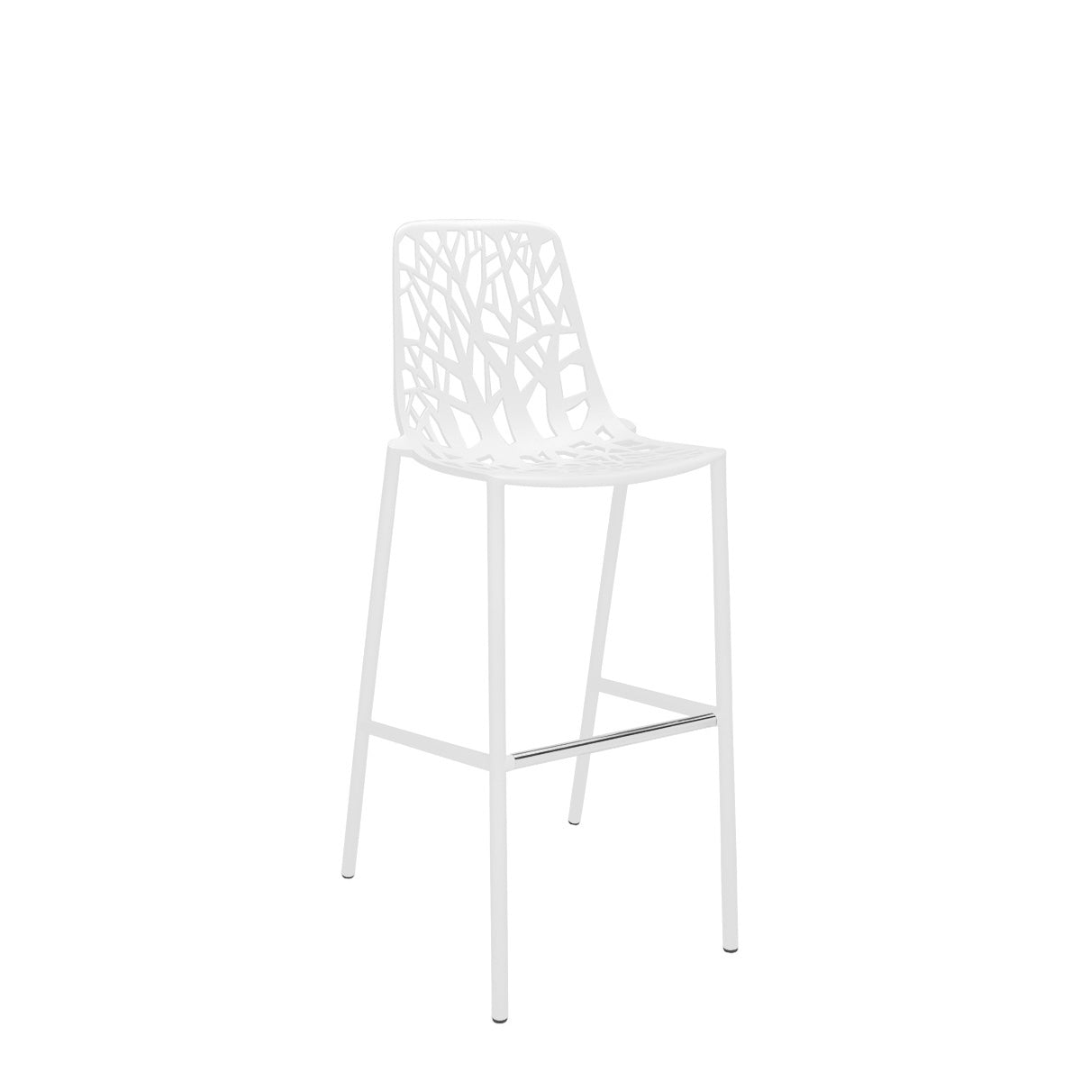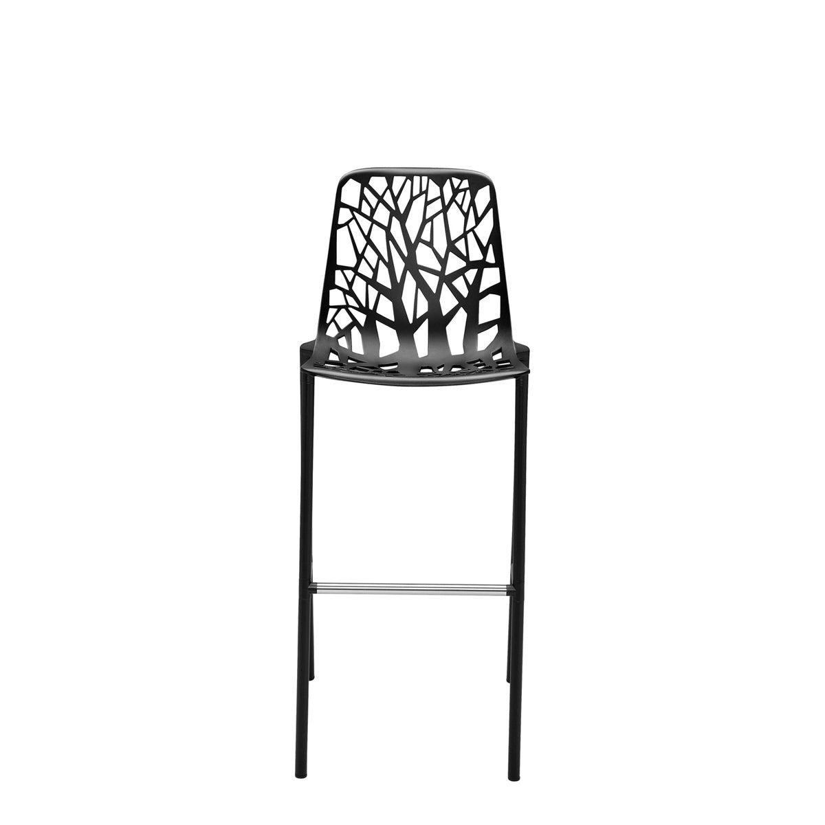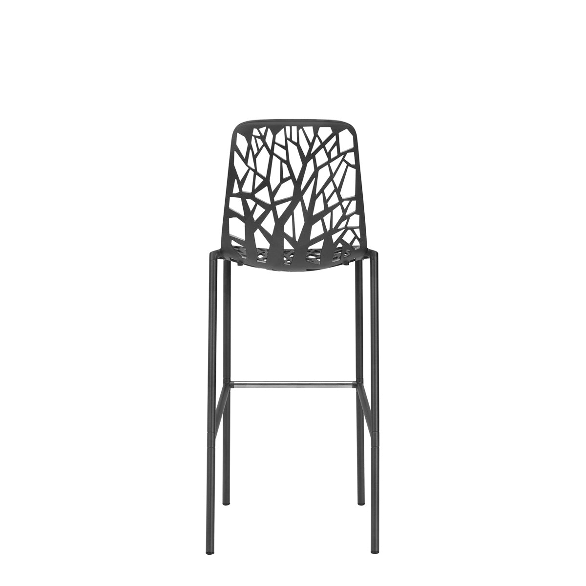 The Forest collection combines modernist elegance with nature-inspired designs. Its powder-coated aluminum structure features seats and backs with die-cut, branch-like patterns. Available in a range of colors, Forest includes armchairs, lounge chairs, stackable side chairs, bar and counter seating, suitable for both vibrant and understated settings.