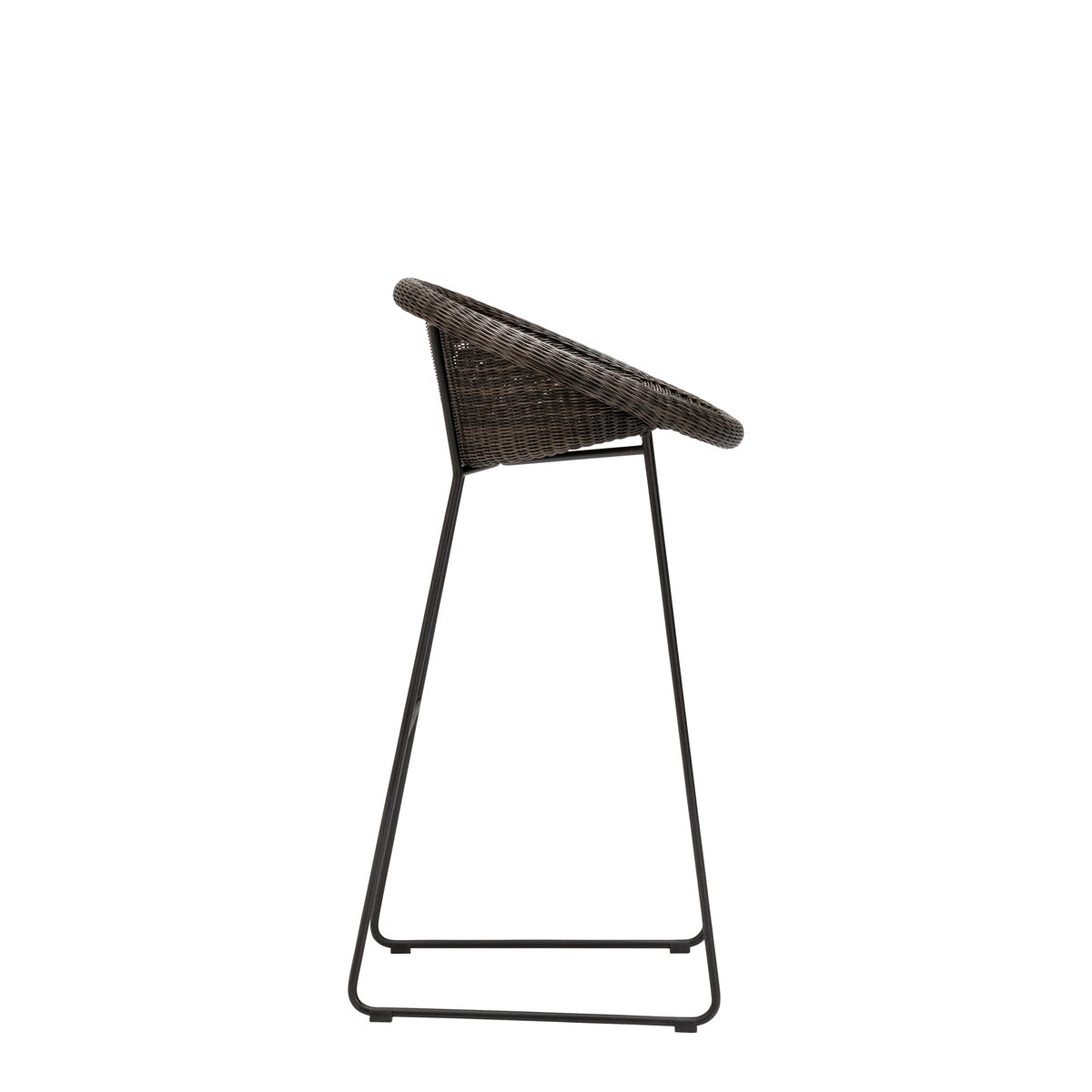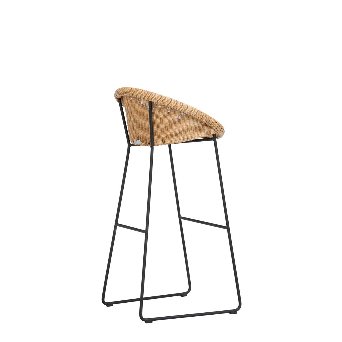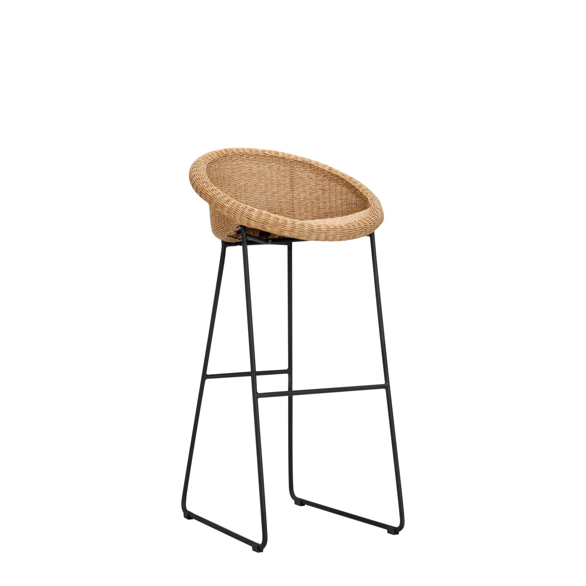 Aluminum frame. Stainless steel base. Weaving: resin wicker.