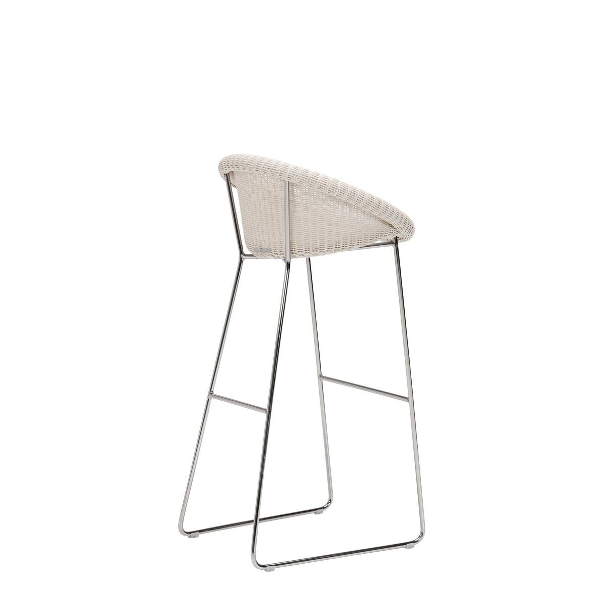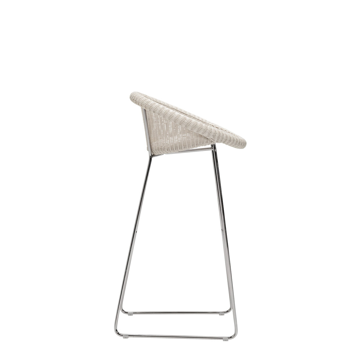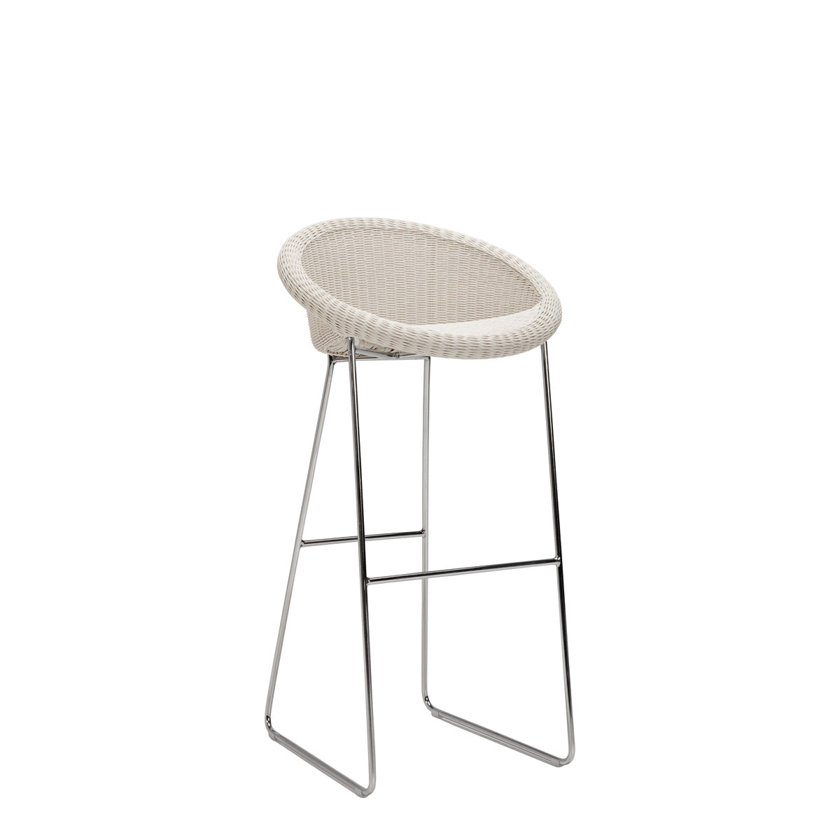 Gigi II reimagines midcentury modern design with handwoven, stainless steel frame pieces. Its range includes armchairs, barstools, and cocoon-like lounge chairs, offering comfort and elegance.