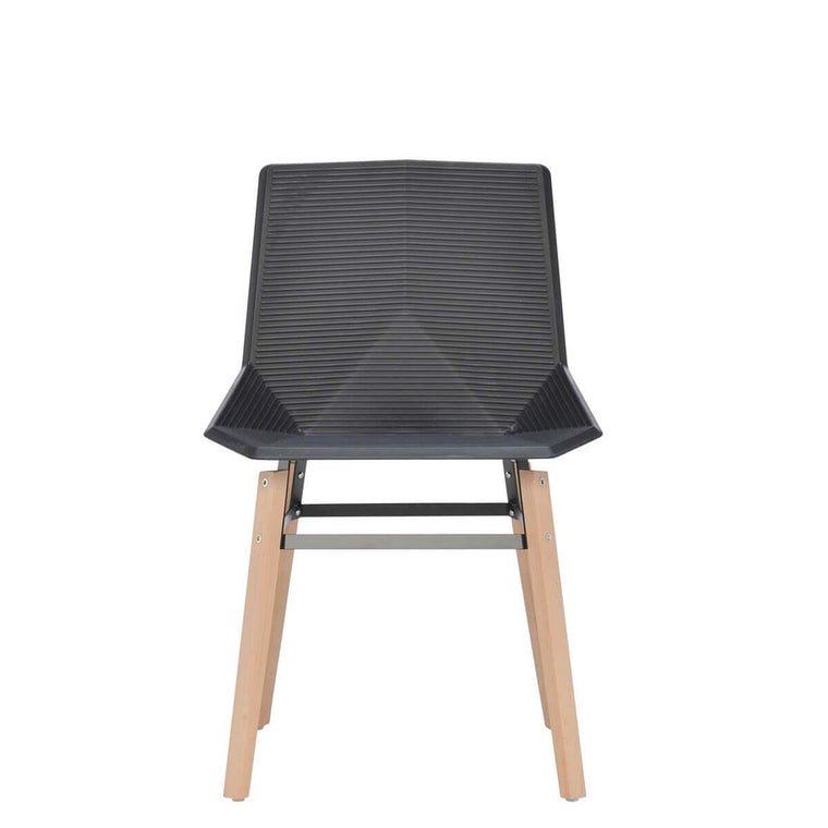 Natural beechwood frame with powder coated steel hardware. Recylcled polypropylene seat and back.