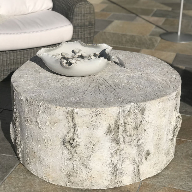 The Grotto collection, in faux bois design, offers side tables and vessels that add rustic elegance to any space. Made from durable stone matrix, these pieces are perfect for adding a woodsy charm to your decor.