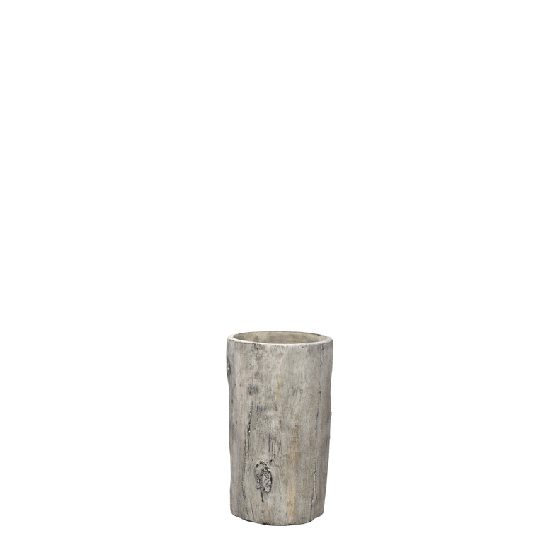 The Grotto collection, in faux bois design, offers side tables and vessels that add rustic elegance to any space. Made from durable stone matrix, these pieces are perfect for adding a woodsy charm to your decor.