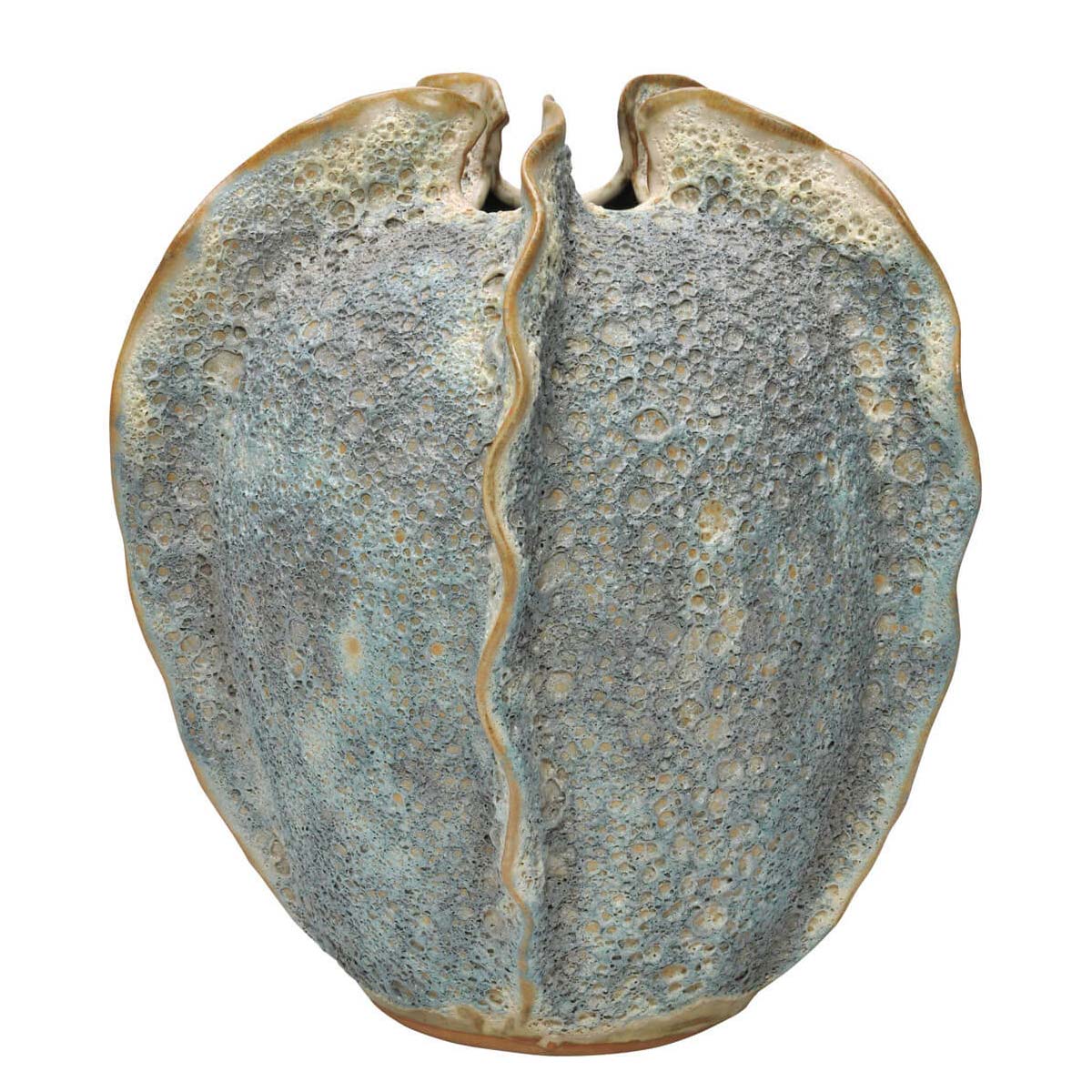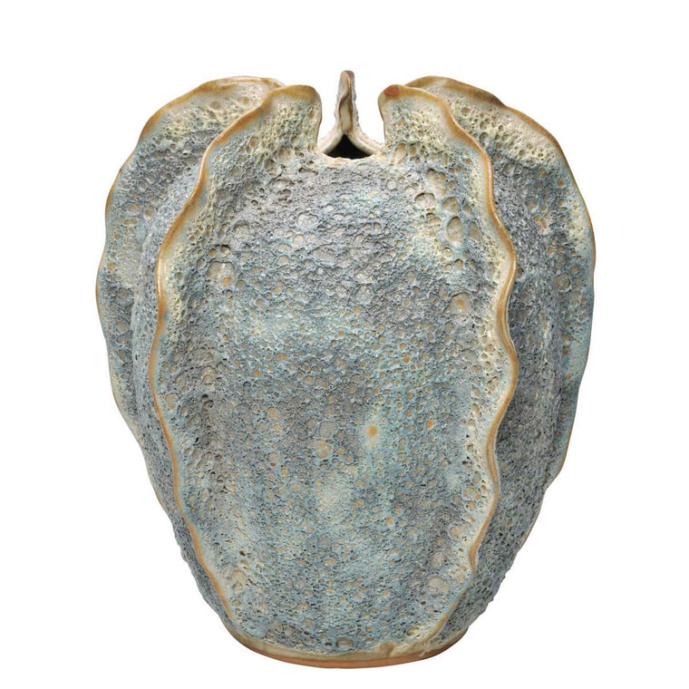 The Carambola Vase, inspired by oceanic forms, features rolling ribs and intricate glaze. This stoneware piece, part of the Habitat collection, adds a touch of wonder to any environment.