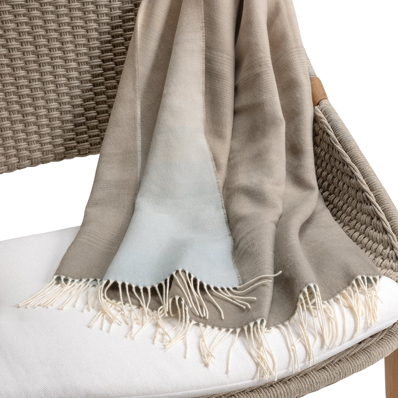 The Ombre Throw blends varying hues in a captivating design. Made from 100% solution-dyed acrylic, this throw is perfect for adding a touch of elegance and comfort to your living spaces.