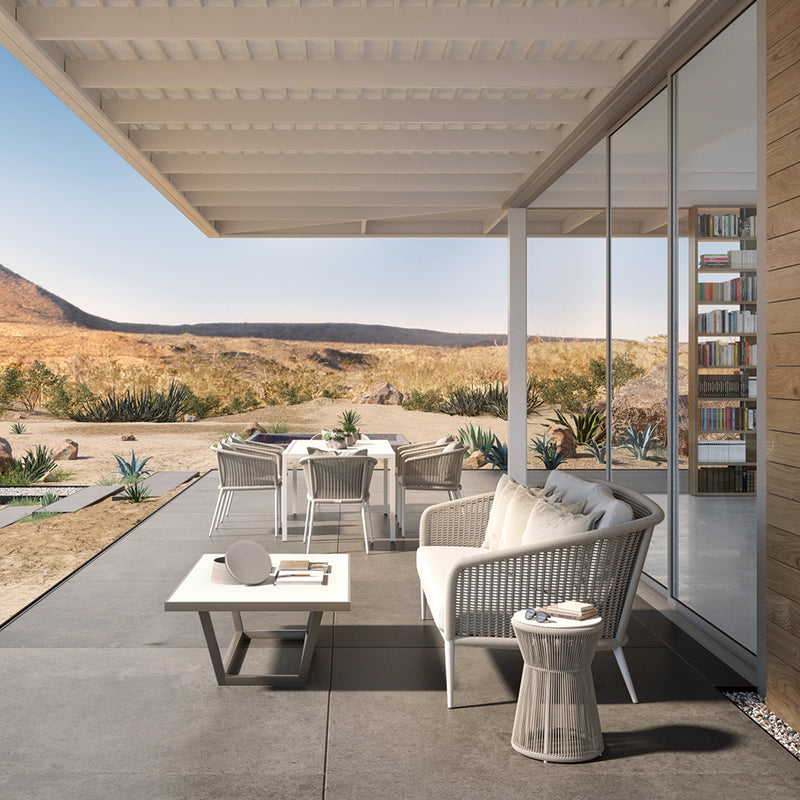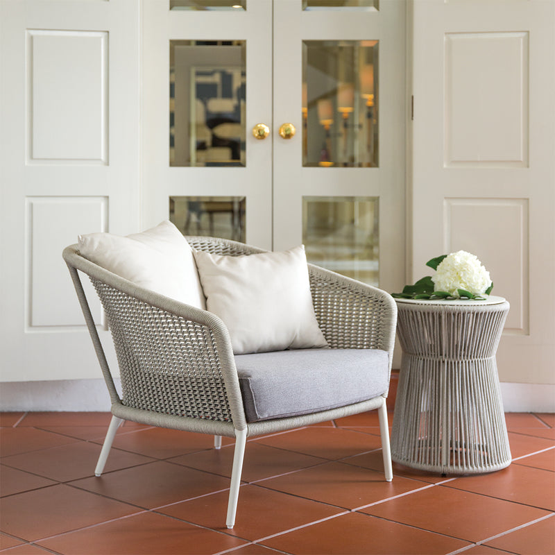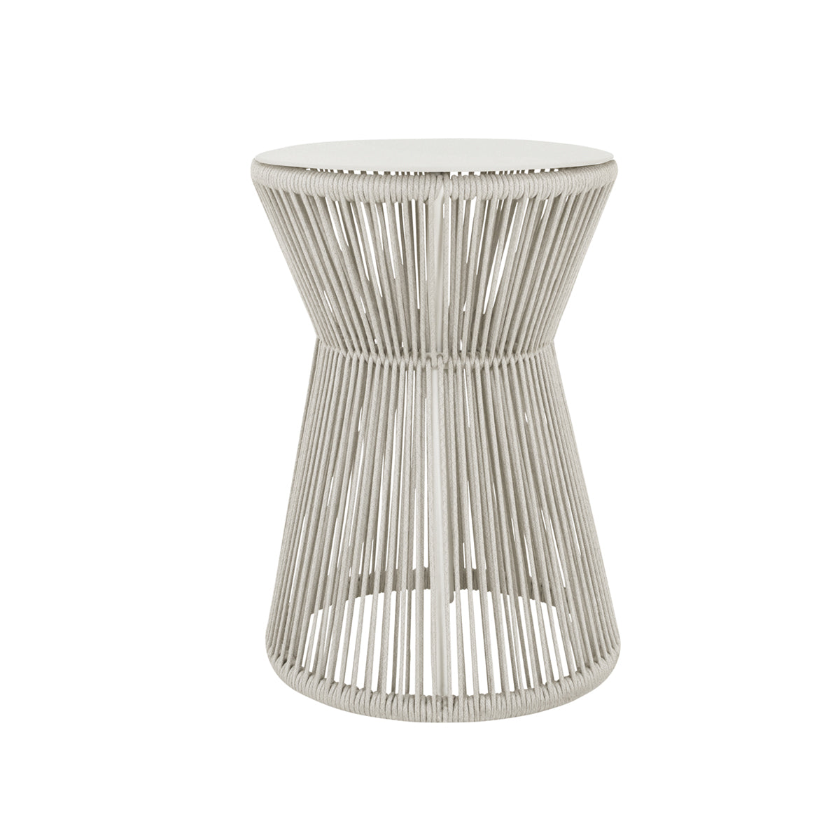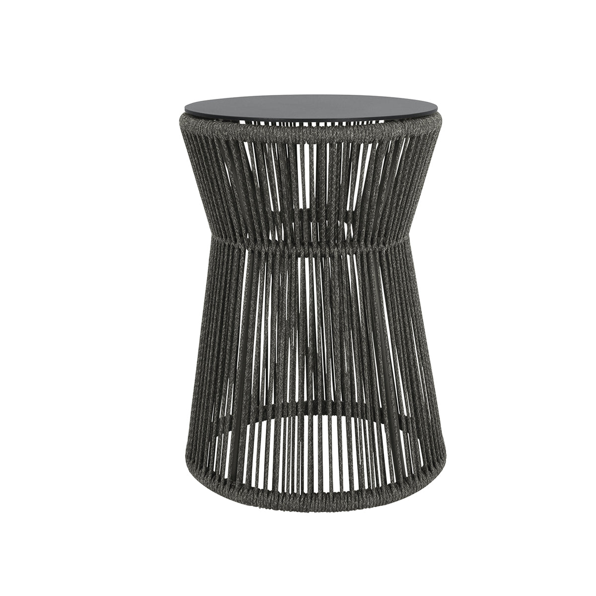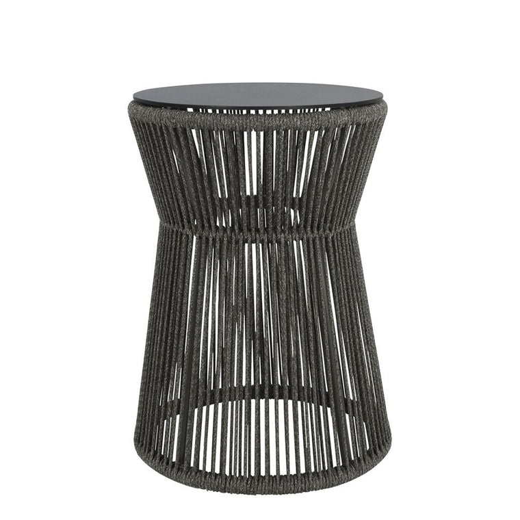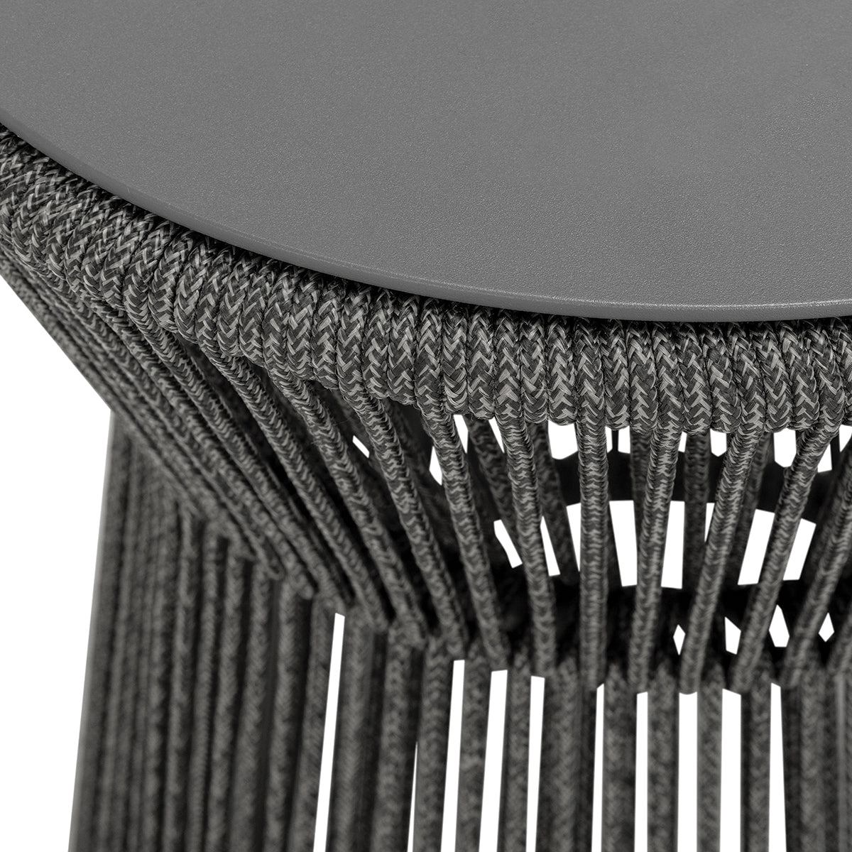 The Knot Side Table Round 39 modifies a midcentury modern-inspired hourglass silhouette and wraps it in exquisite texture. Intricately handwoven ropes invite intriguing shadows and pattern-play while an exceptionally durable, powder coated aluminum frame and tabletop provide beautiful structure and substance.