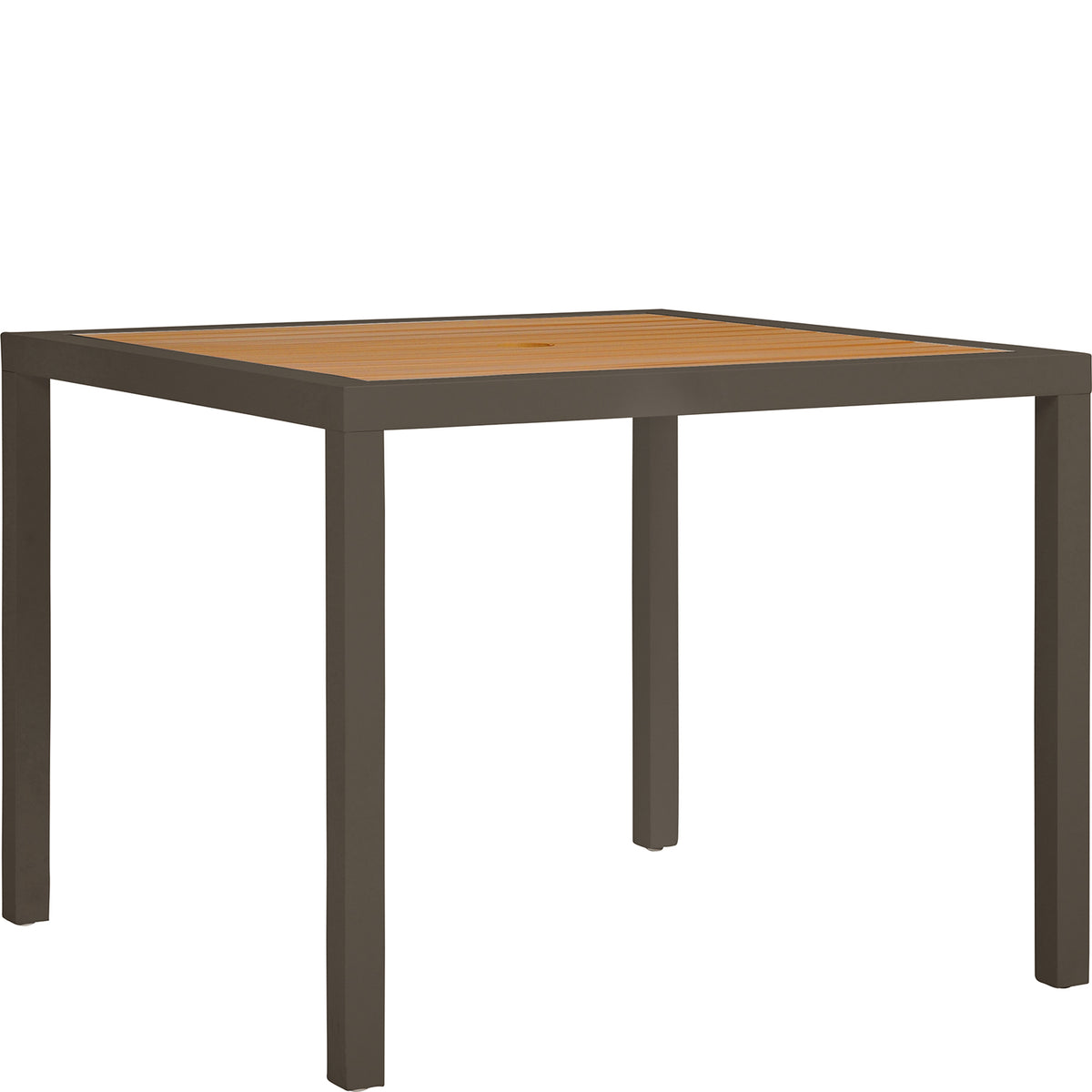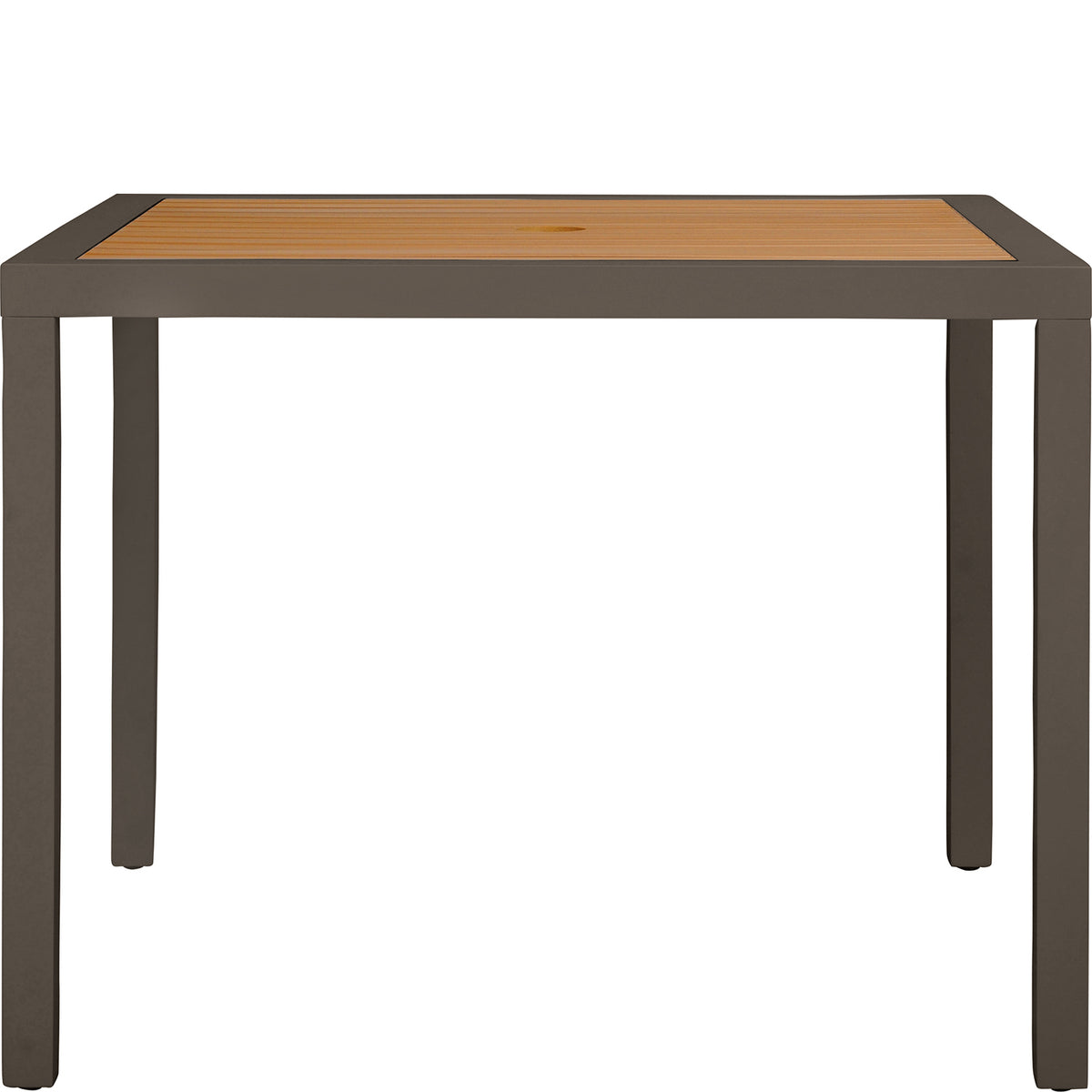 Frame: Aluminum with JANUScoat. Top: Inset Natural JANUSwood Slats with Umbrella Hole.