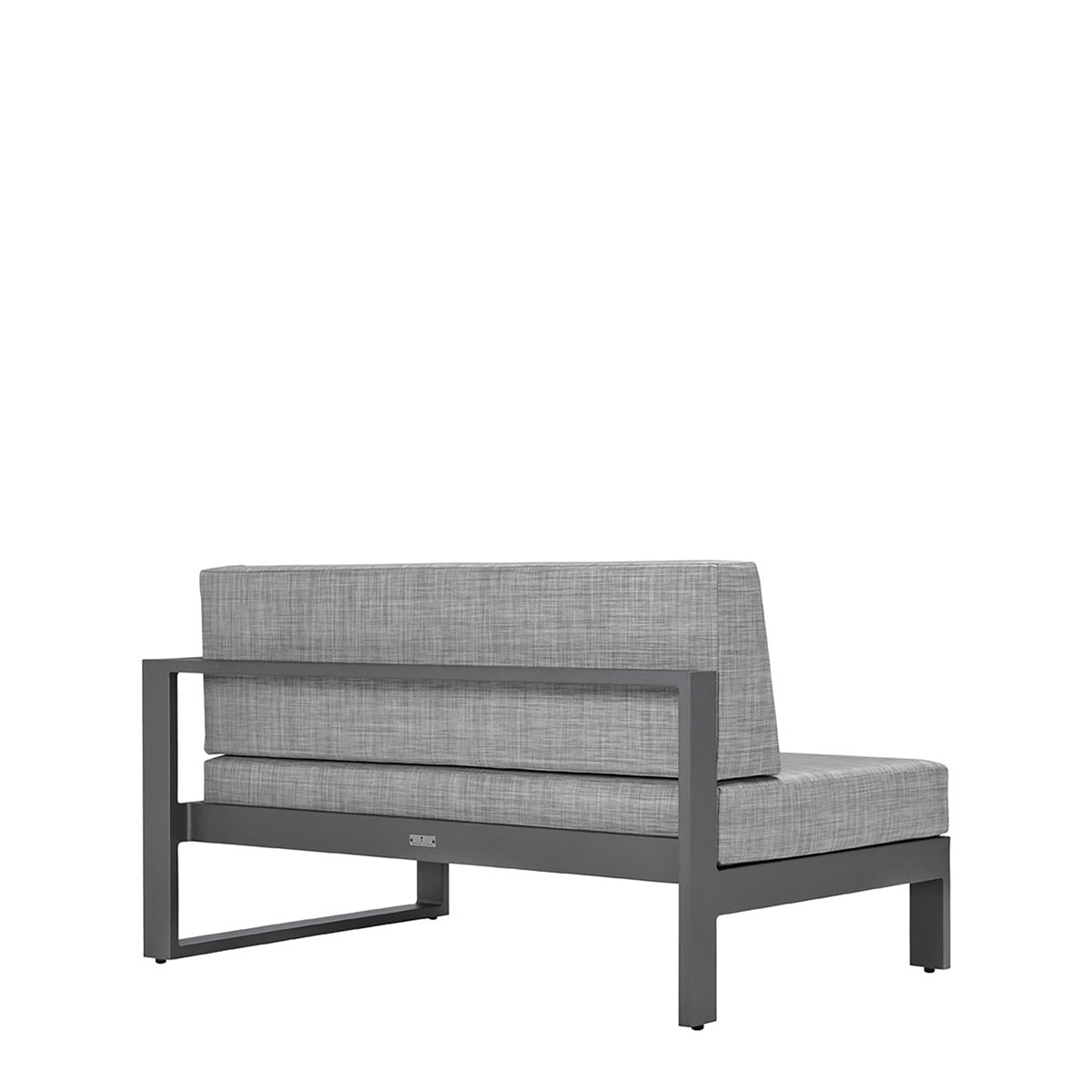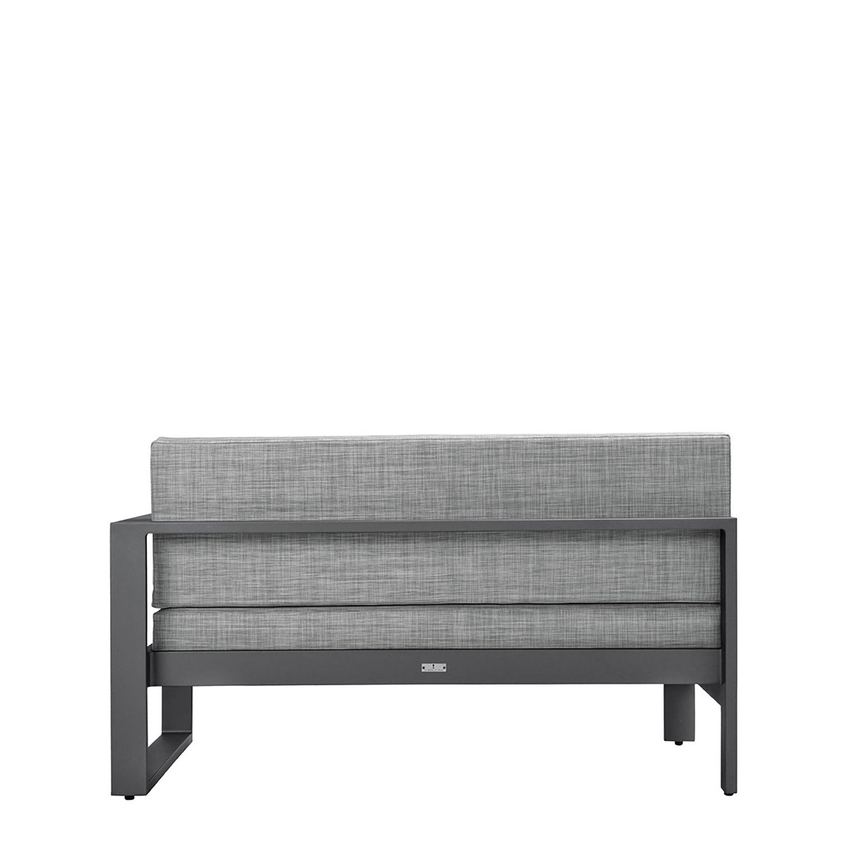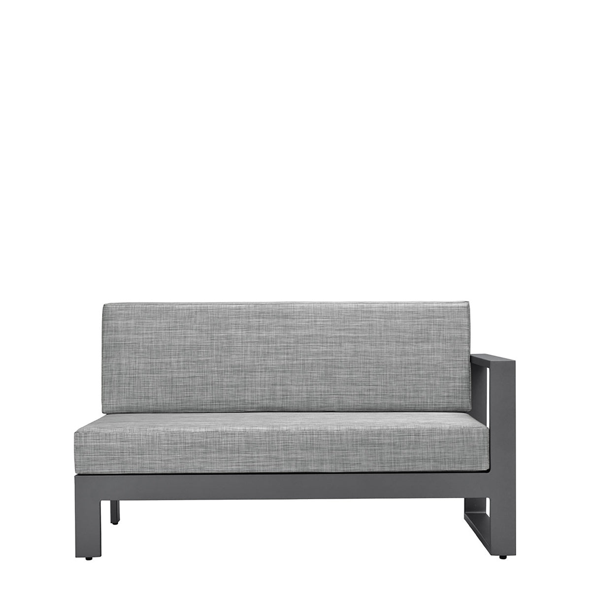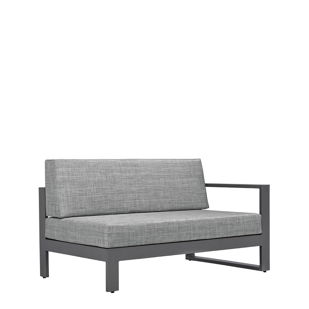 An open, squared frame at the left side of the module allows it to serve as an endpoint in endless configurations of customizable, modular seating, or the piece may be placed on its own as a recamier.
