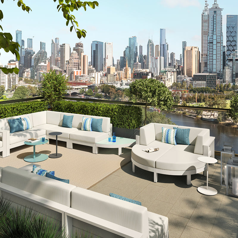 Aluminum with JANUScoat frame. Polyvinyl mesh.