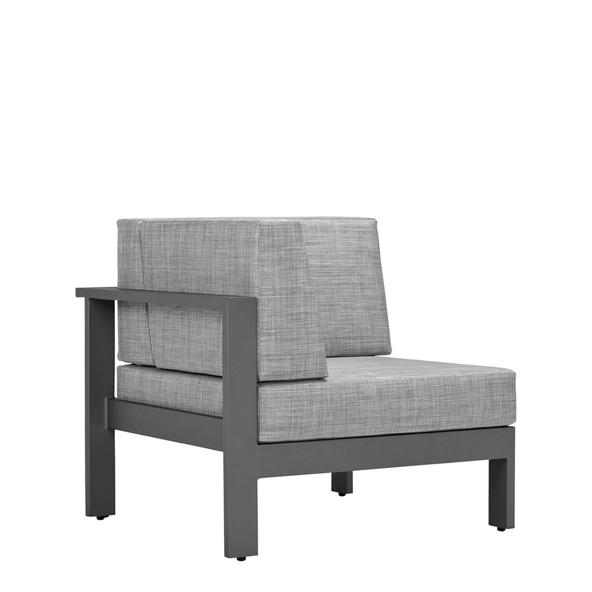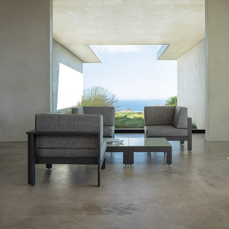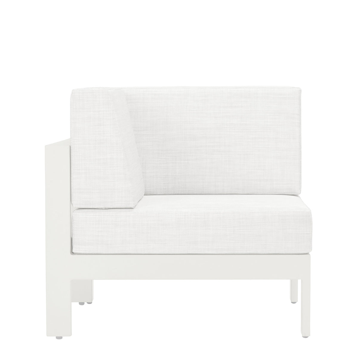 The Matisse Module Corner presents a clean, contemporary form with a spare yet substantial silhouette. An open, squared frame supports this module that may serve as an endpoint in endless configurations of customizable, modular seating.