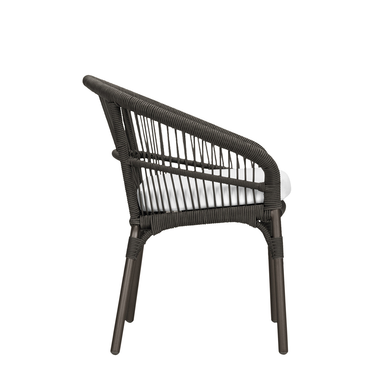 The Nexus collection draws inspiration from native drums, blending woven patterns with a modern, rounded silhouette. Made of polypropylene rope over an aluminum frame, Nexus offers comfortable, lightweight seating ideal for both indoor and outdoor settings.