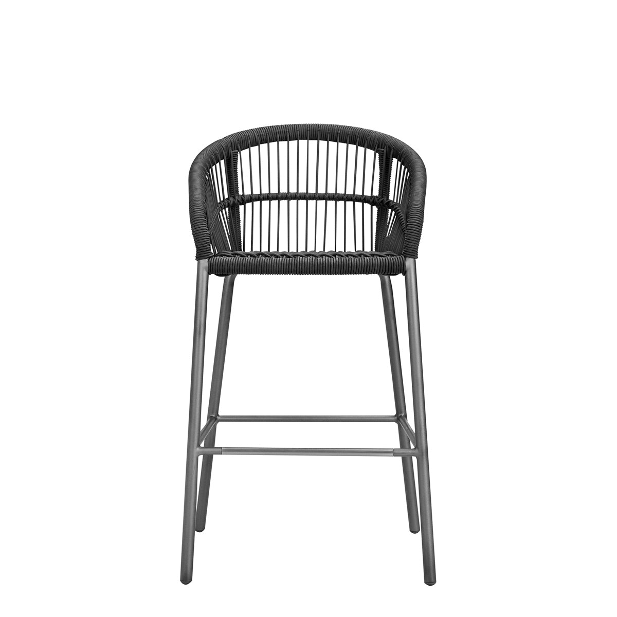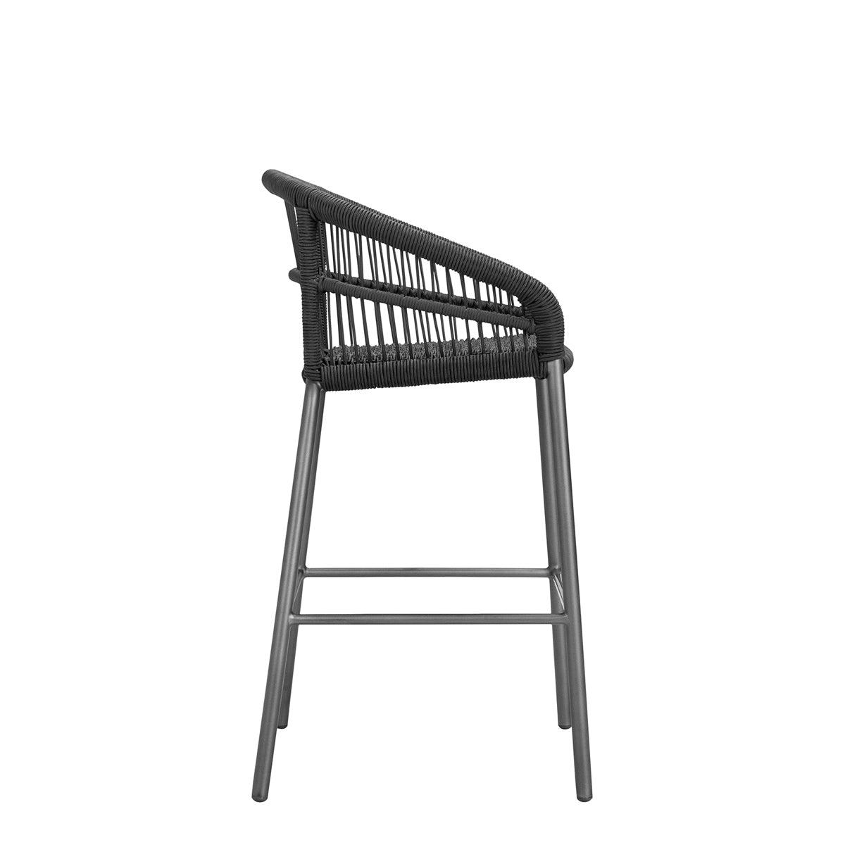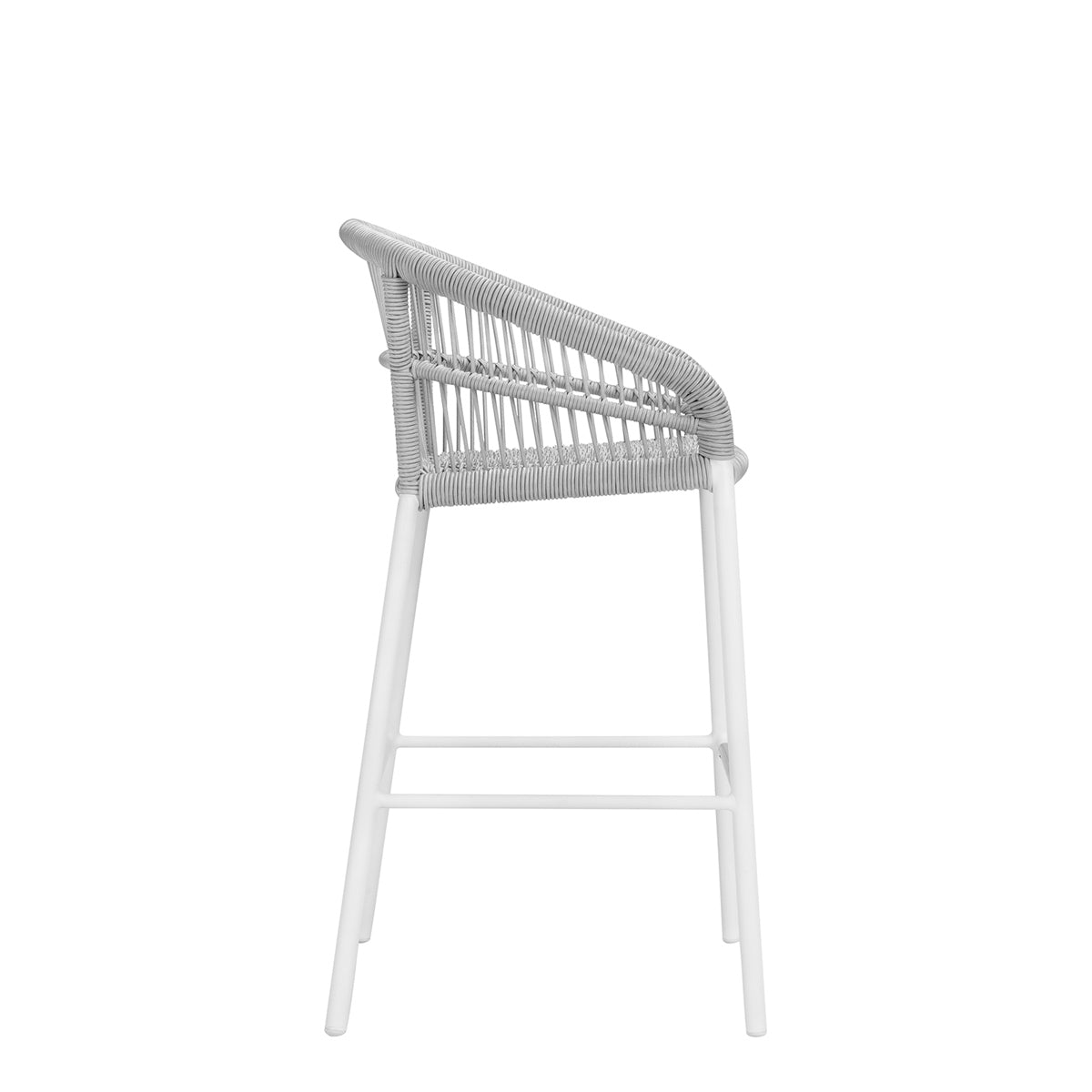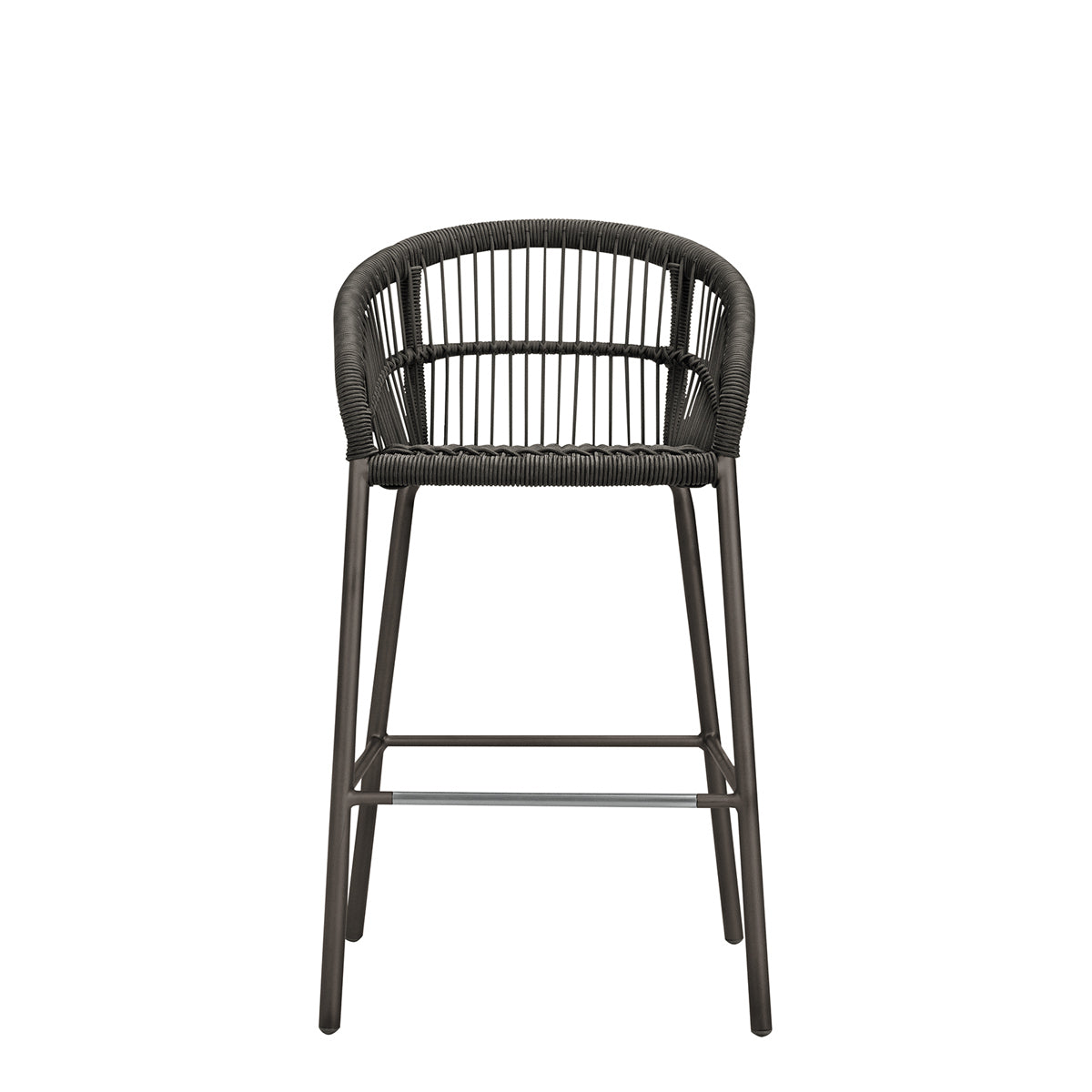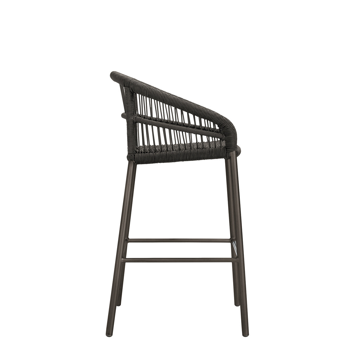 The Nexus Barstool features a powder coated aluminum frame and tightly woven polypropylene rope, echoing the contours and intricate lacings of traditional, native drums, which inspired the Nexus collection. Designed to withstand sunny, exterior settings for many years of fade-resistant beauty, the barstool’s seat and back fibers are specially treated for enhanced UV resistance, and a sleek footrest rung offers additional durability and protection. An optional seat cushion is available for separate purchase.