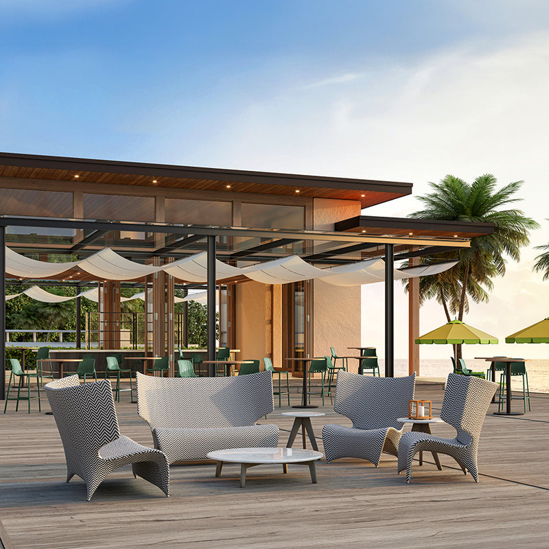 Orchid, created by Milan-based design team Serafini + Palomba, features seamless, fluid profiles of sculptural beauty, evoking the exotic flora for which it is named. Orchid’s contemporary winged silhouettes are masterfully handwoven into ergonomic forms that cradle the body and harmonize with nature.