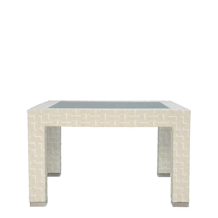 Pacific Glass Top Side Table - Limestone Tri-Weave