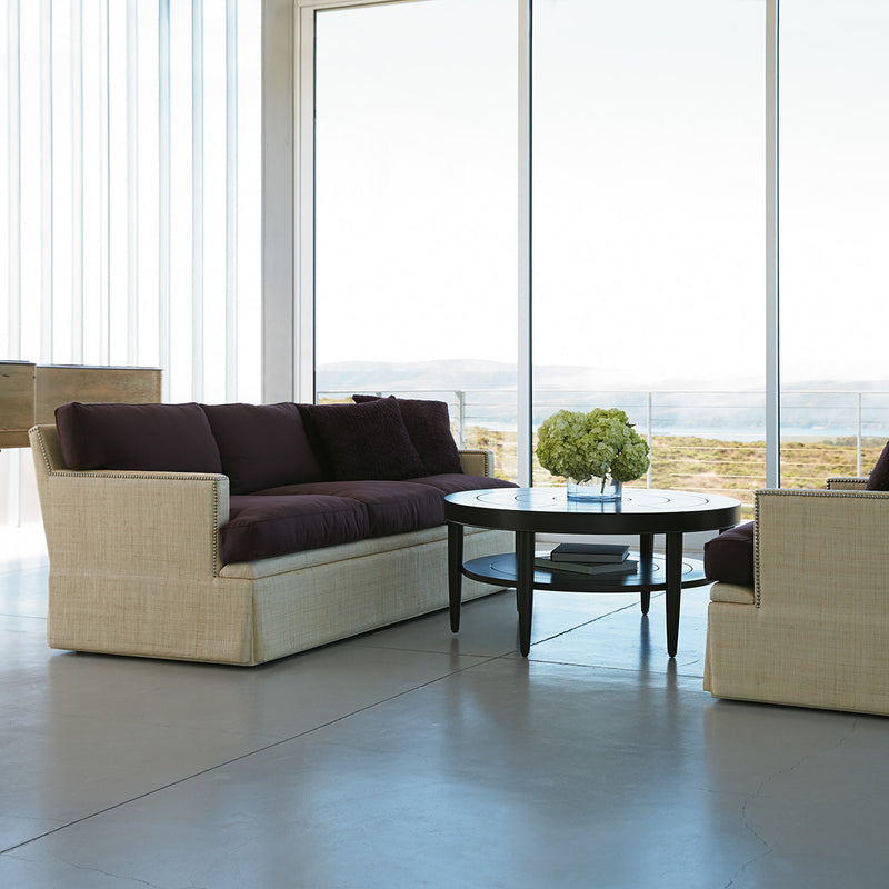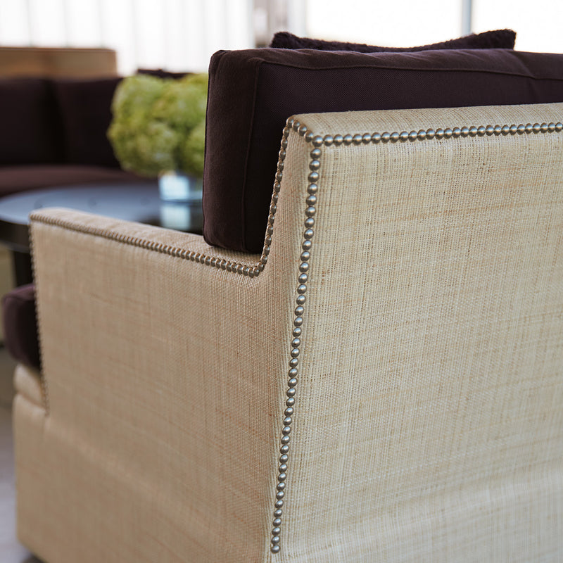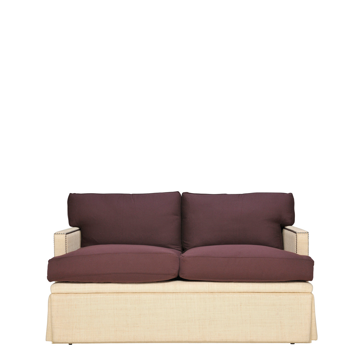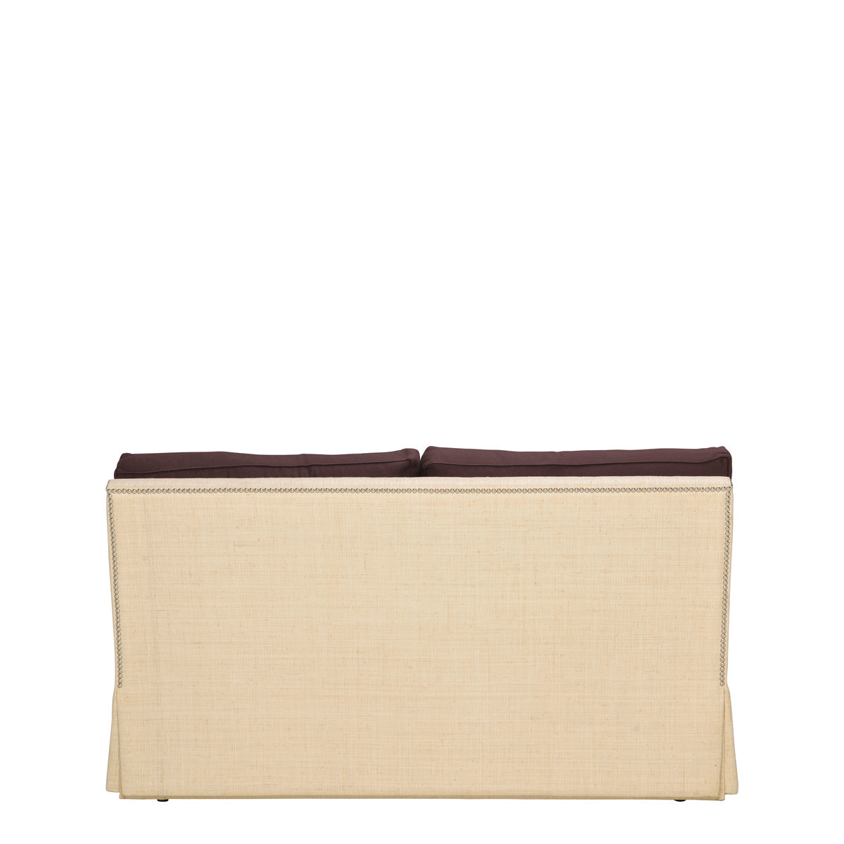 The Pleat Sofa 2 Seat is made with a hardwood frame covered in handwoven raffia, accented with brass nail heads along the edge.