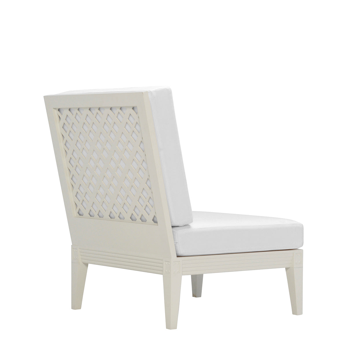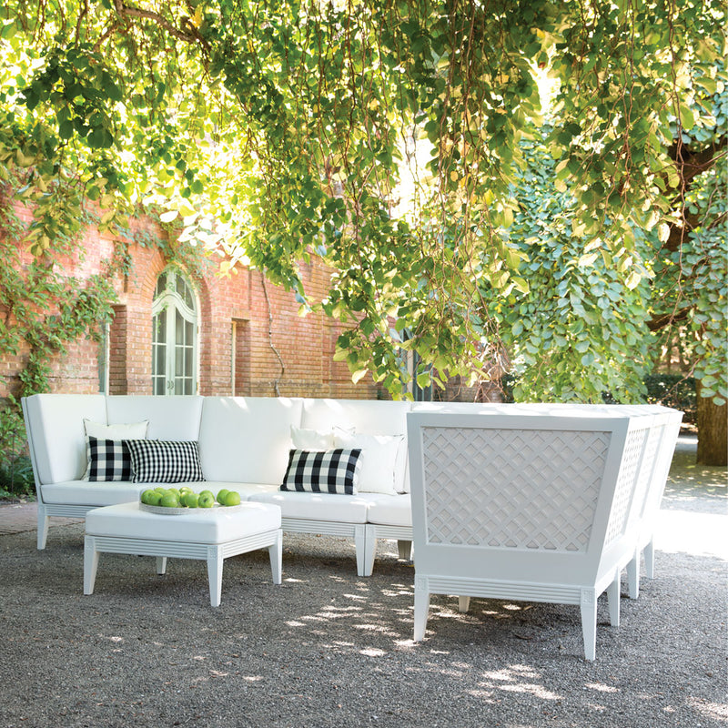 Quadratl, inspired by Viennese Secessionist modernism, features powder-coated aluminum with openwork trellis and grid motifs. Designed by Orlando Diaz-Azcuy, this collection offers dining and lounge pieces that brings an extra level of refinement to all settings.