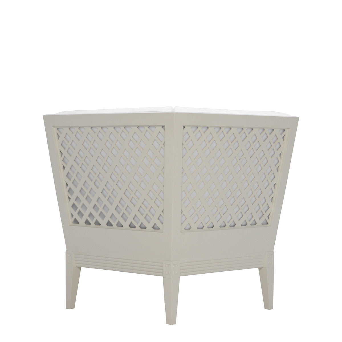 Quadratl, inspired by Viennese Secessionist modernism, features powder-coated aluminum with openwork trellis and grid motifs. Designed by Orlando Diaz-Azcuy, this collection offers dining and lounge pieces that brings an extra level of refinement to all settings.