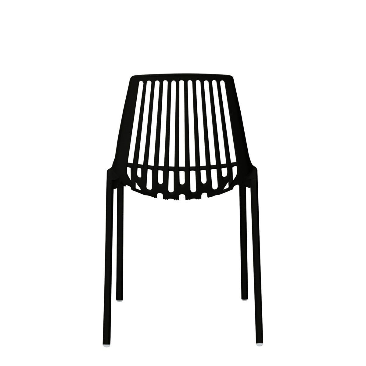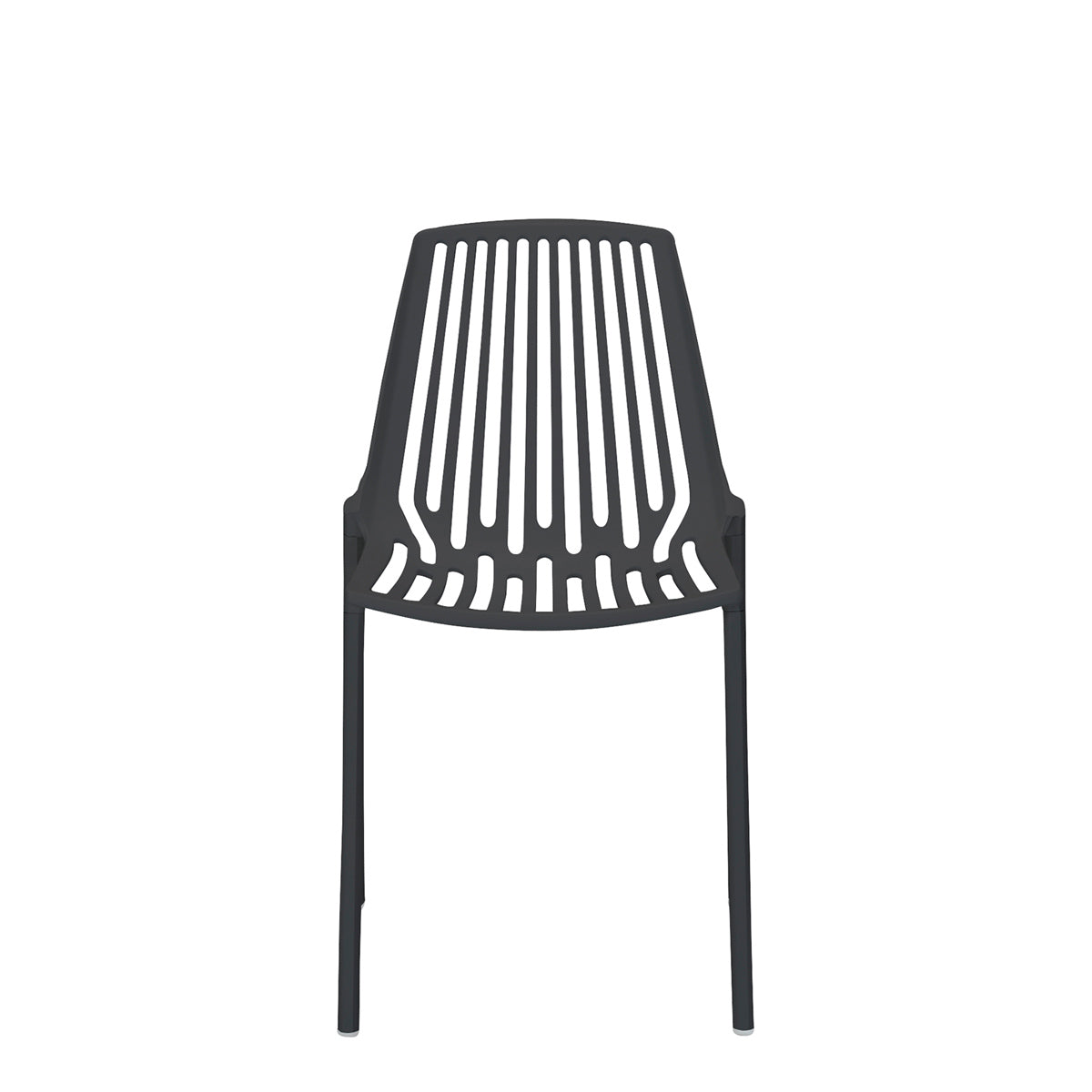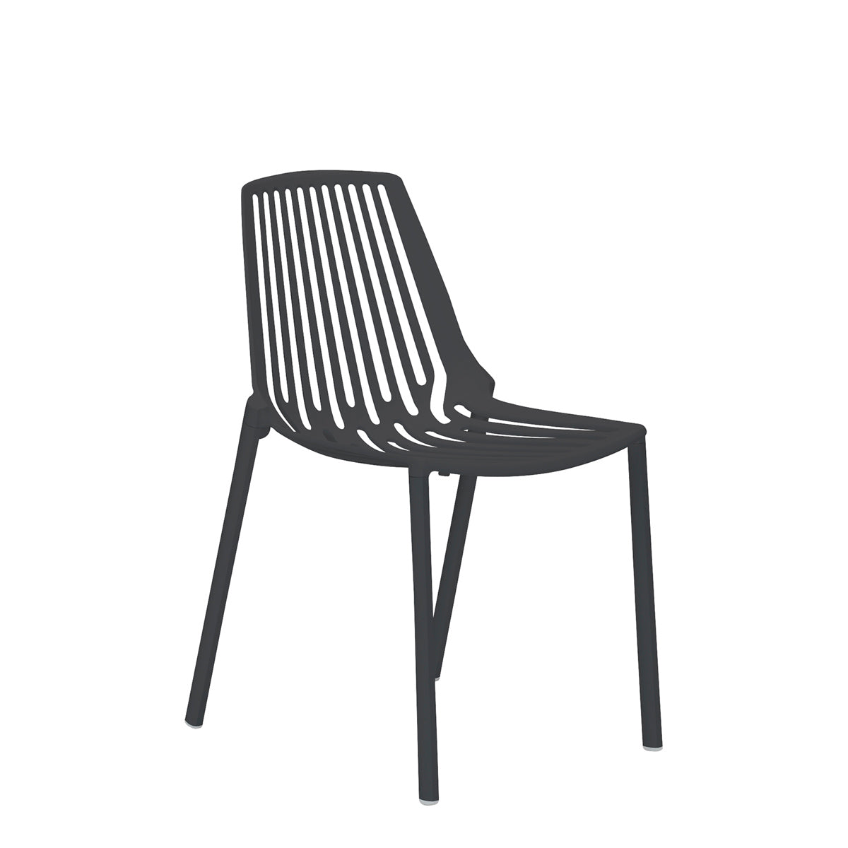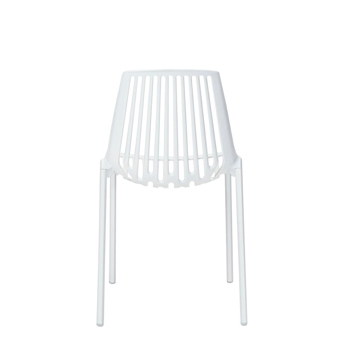 Rion's modernist silhouette and graphic linear details create a distinctive and inviting seating collection. Its powder-coated aluminum construction ensures durability, making it suitable for both indoor and outdoor use, and available in a range of hues.