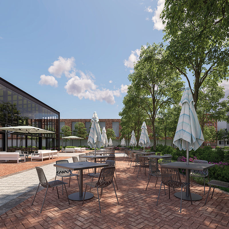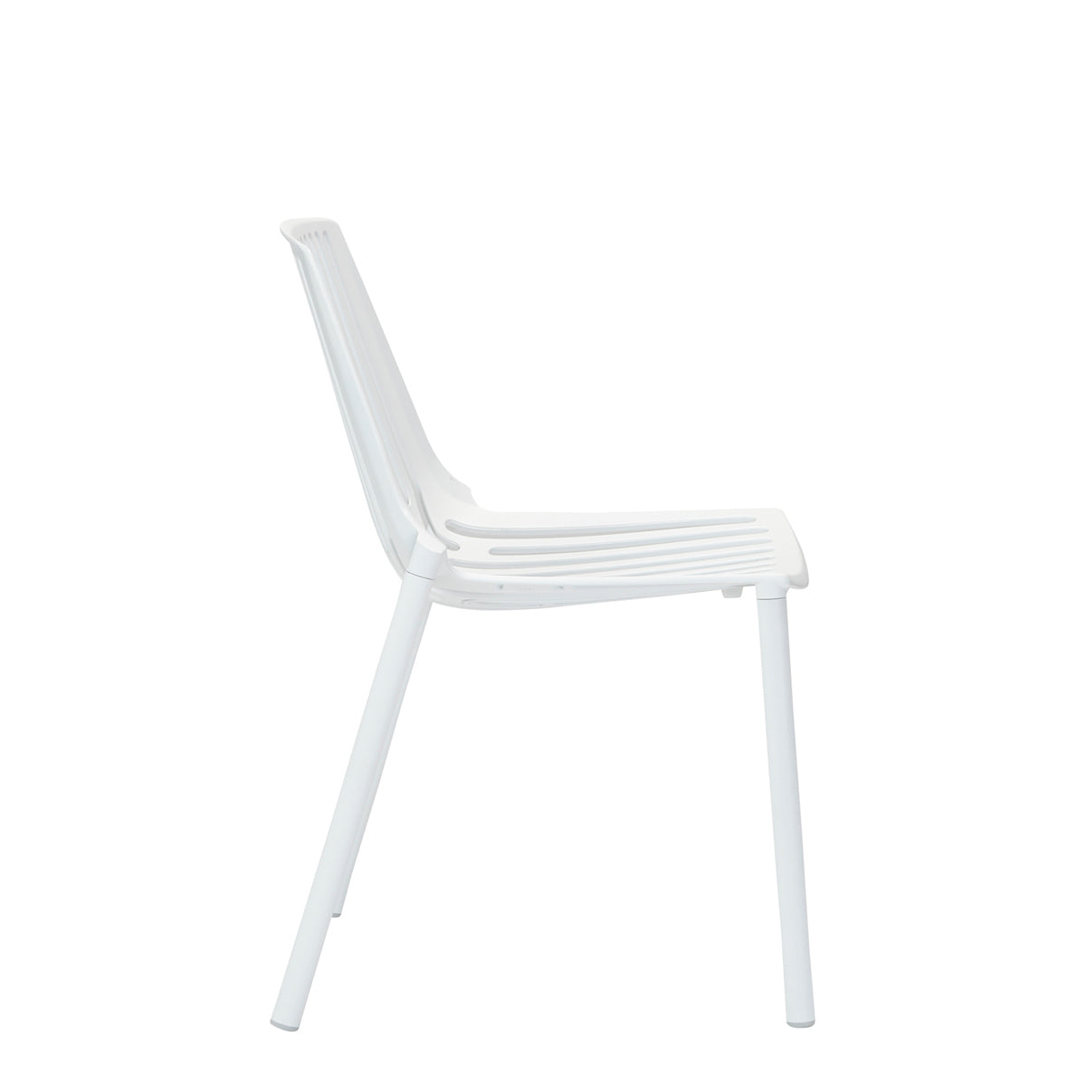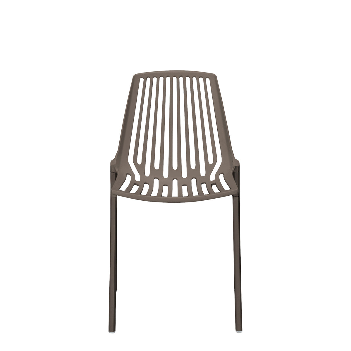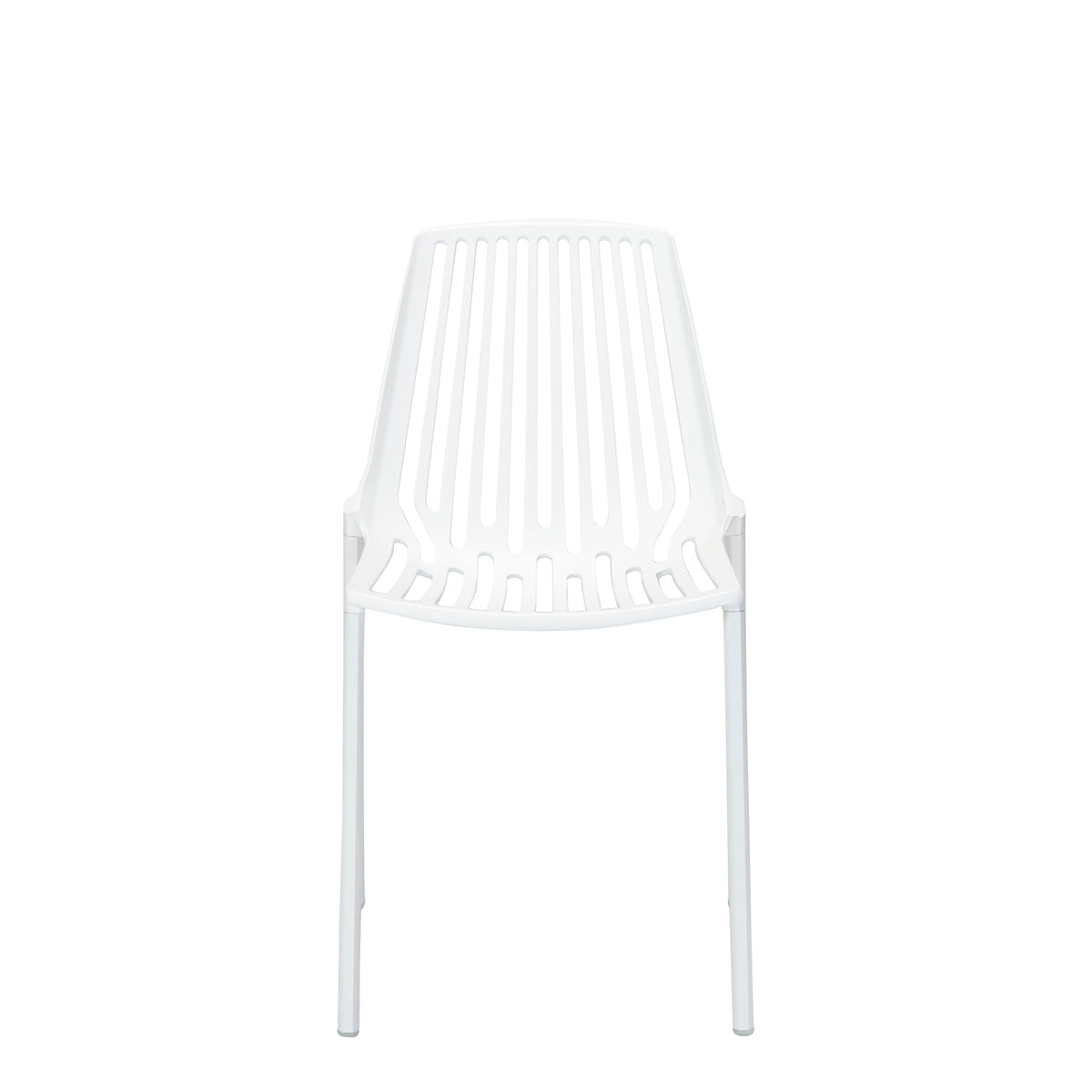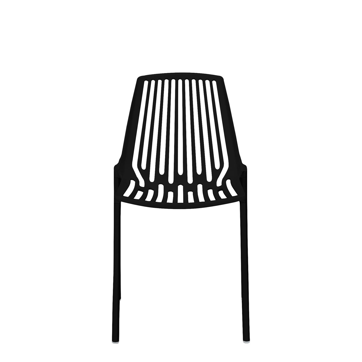 Rion's modernist silhouette and graphic linear details create a distinctive and inviting seating collection. Its powder-coated aluminum construction ensures durability, making it suitable for both indoor and outdoor use, and available in a range of hues.