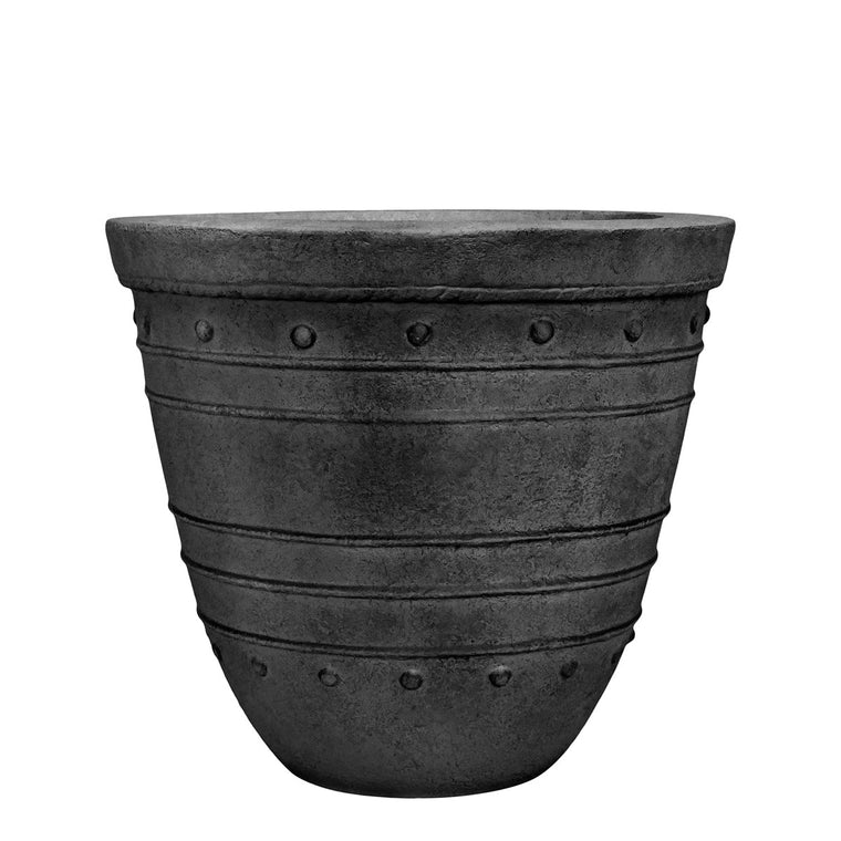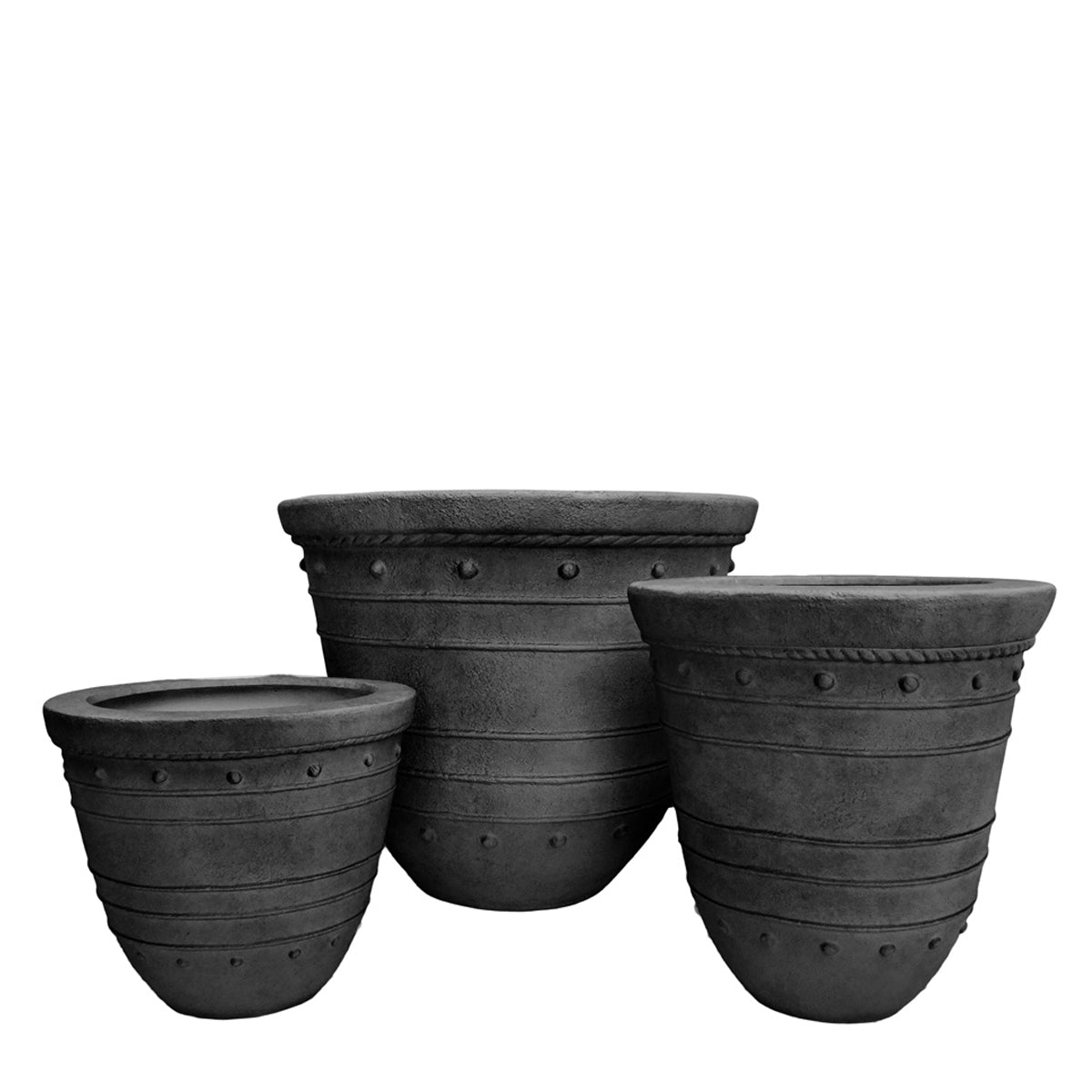 The Sairee Planter - Real Bronze is a set of JANUSstone planters in a dark Real Bronze finish. It is suitable for interior or exterior use and includes a drainage hole. This round planter is available in three sizes