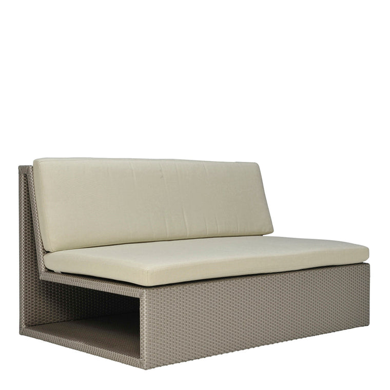 Created for JANUS et Cie by renowned designer and architect, Michael Vanderbyl, the SEE! modular lounge collection evokes the casual elegance of the California coast. Clean-lined simplicity is complemented by our proprietary UV- and wear-resistant JANUSfiber, handwoven over sturdy, powder coated aluminum frames. A juxtaposition of straight angles and rounded corners, options for modules of varying lengths, and a choice of closed or open silhouettes, SEE! presents endless configuration opportunities to make an intriguing structural statement. SEE! is available in two versatile neutral hues: rich Bronze or Palladium, a beautifully soft taupe.