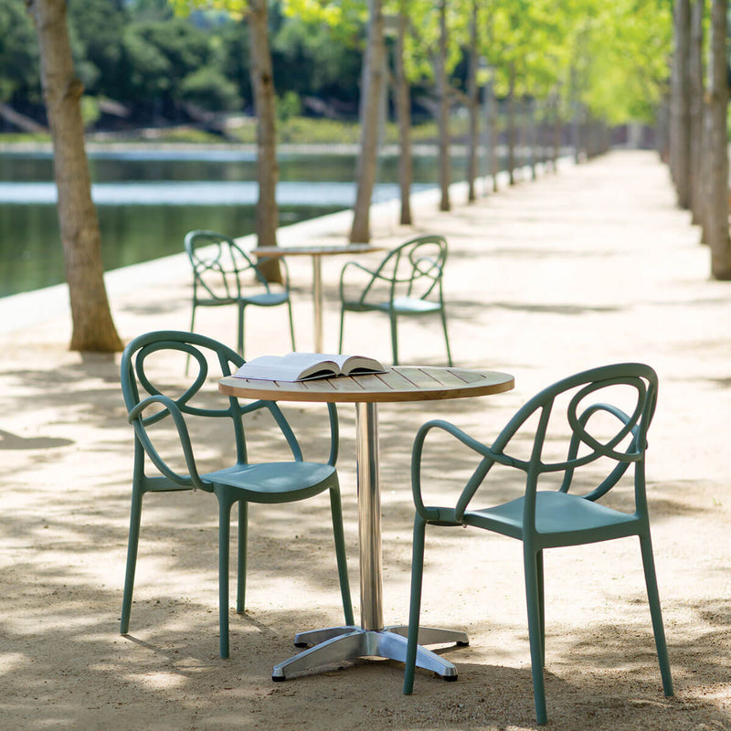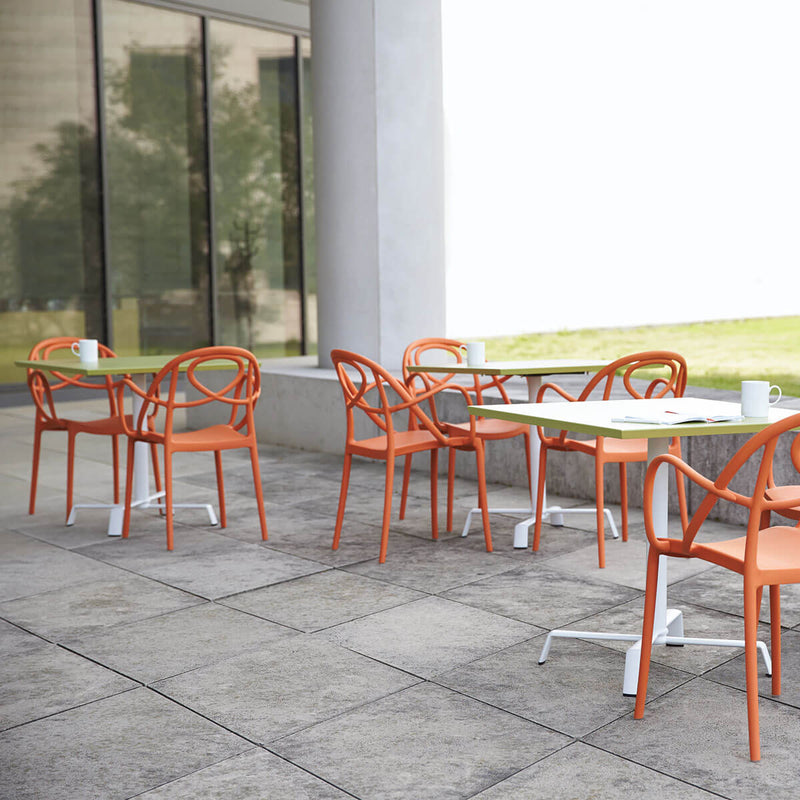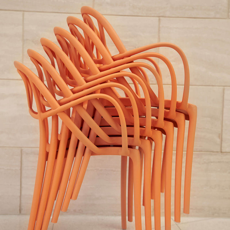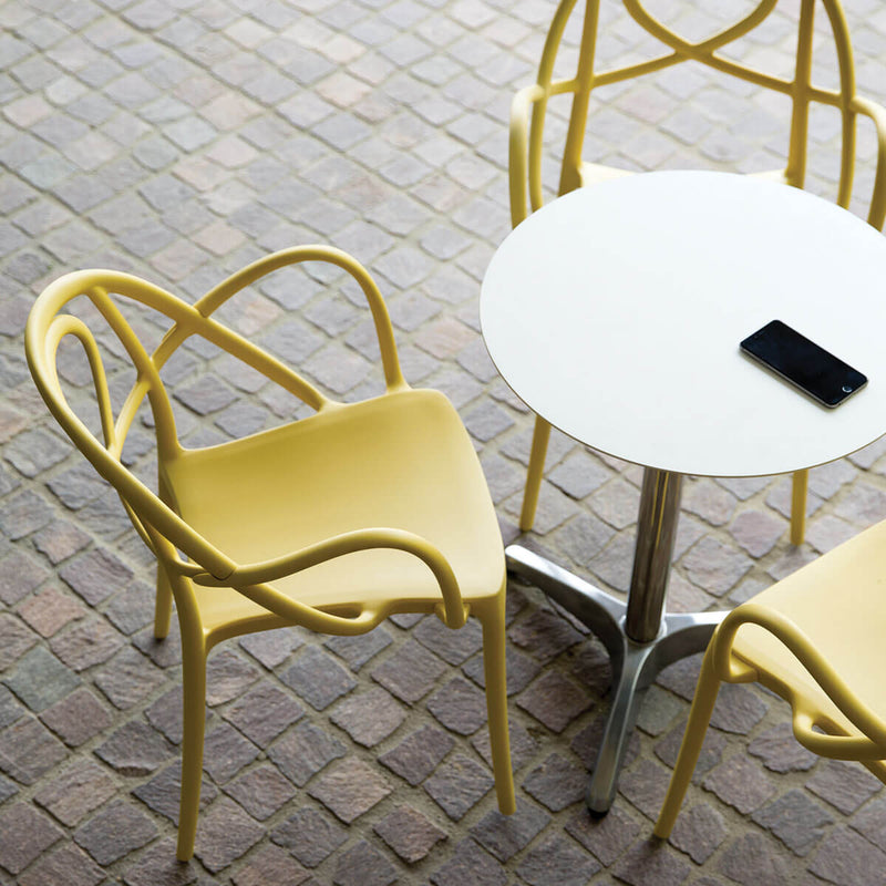 The Sketch collection reinvents the classic bentwood chair with durable polypropylene, suitable for high-traffic areas. Available in various colors, it's lightweight, stackable, and perfect for any setting.