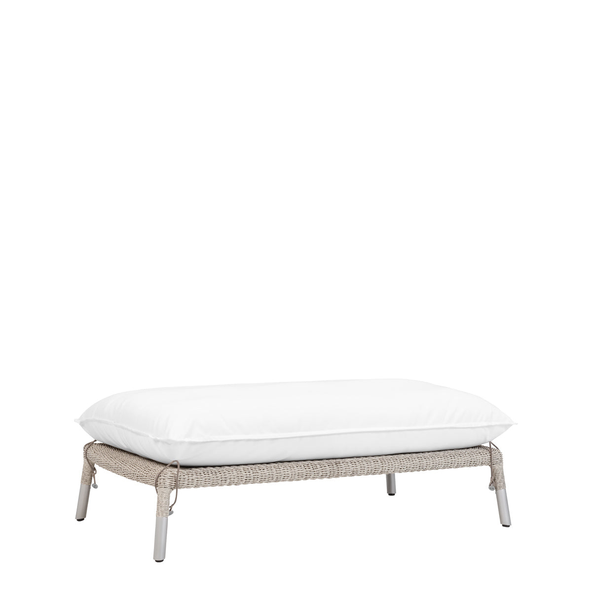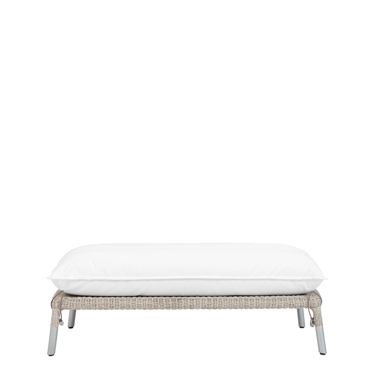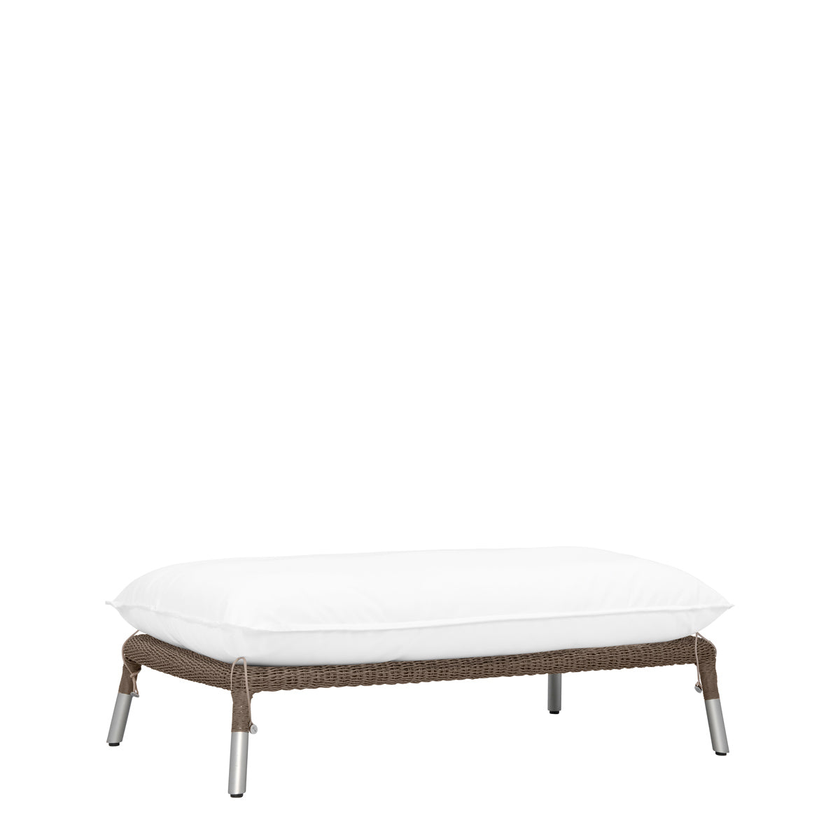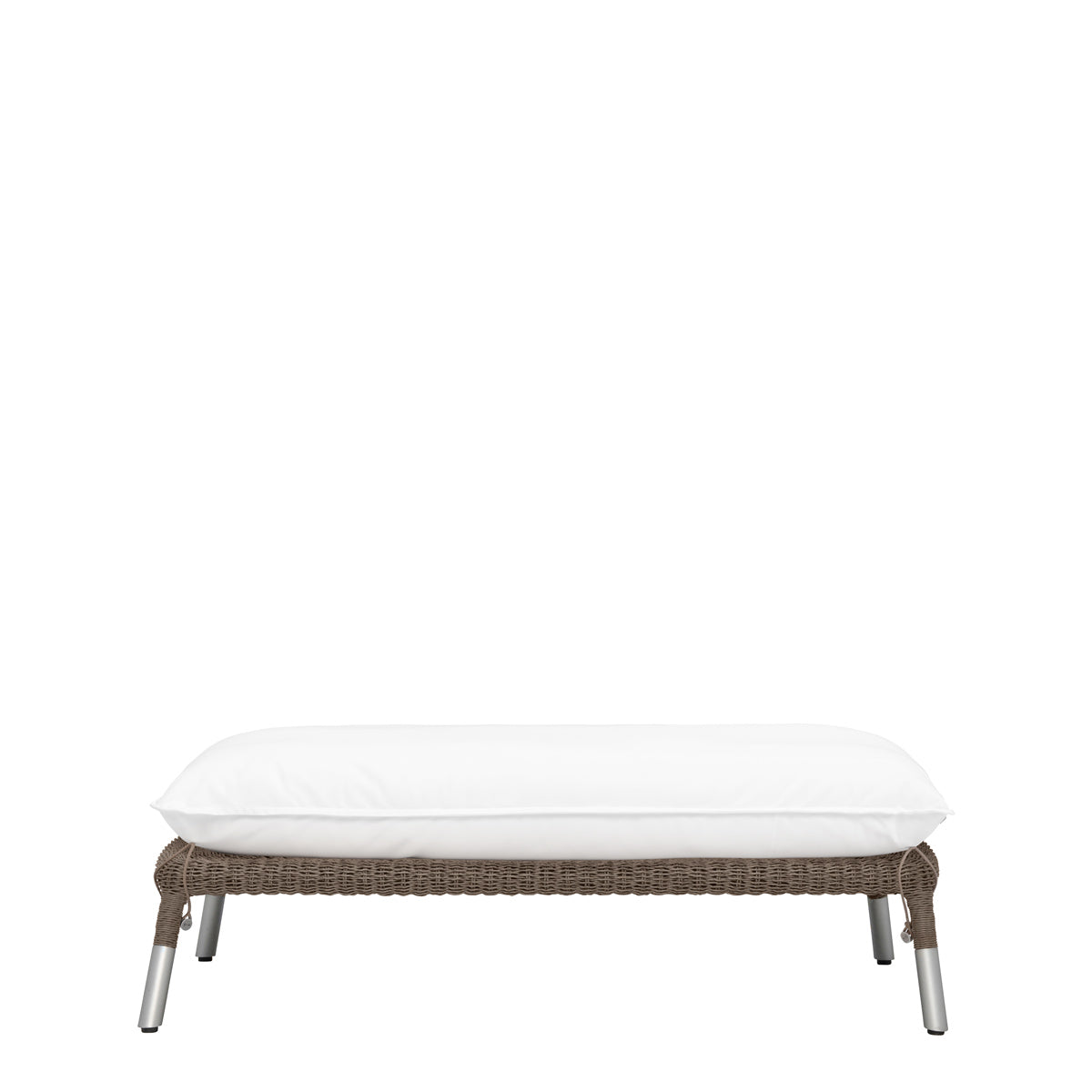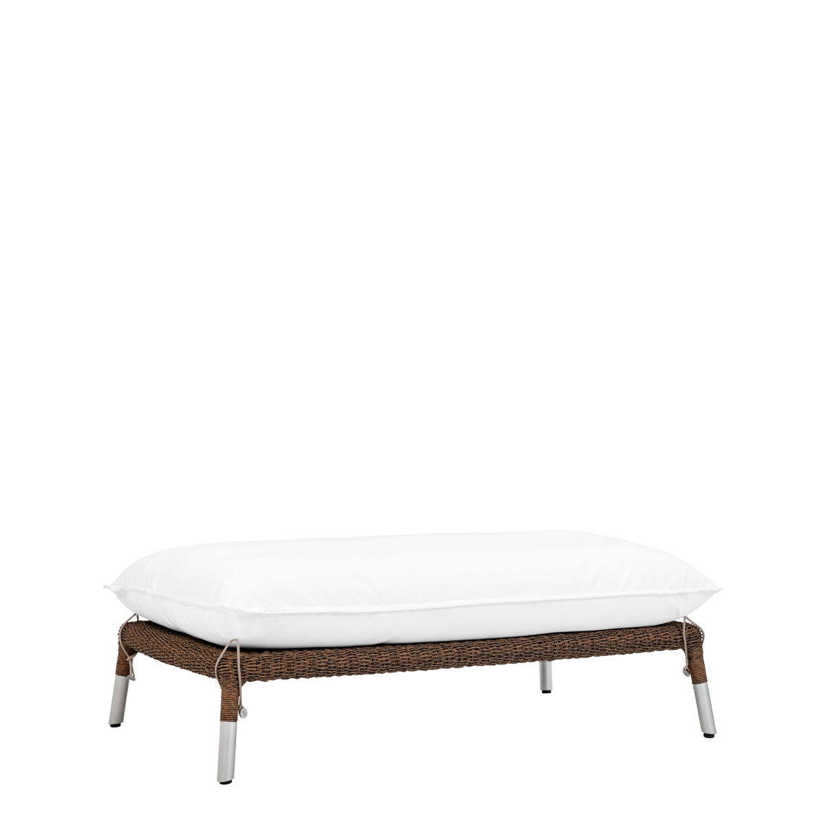 The Strada Ottoman/Table features a sturdy powder coated aluminum frame and intricately woven JANUSfiber, a material engineered to beautifully withstand exterior elements in a refined, natural fiber-like texture. The ottoman/table is exceptionally versatile in interior and exterior settings and is an ideal complement to the Strada three-seat sofa. An optional cushion is available for separate purchase. This item is final sale and not eligible for return.