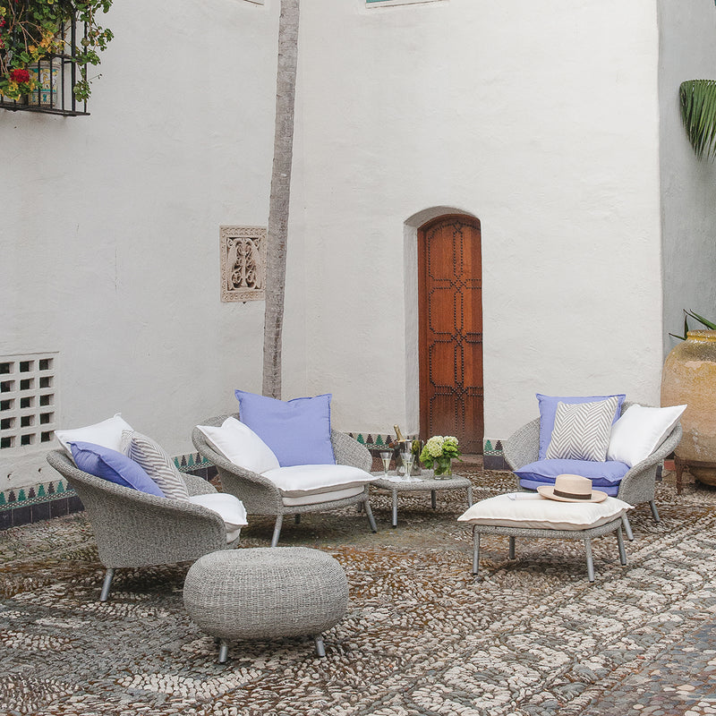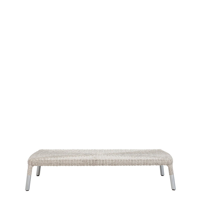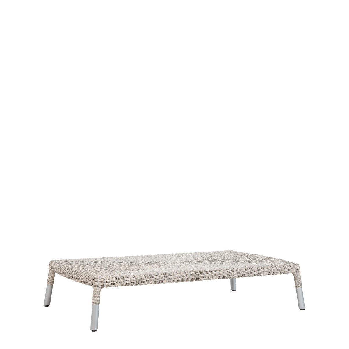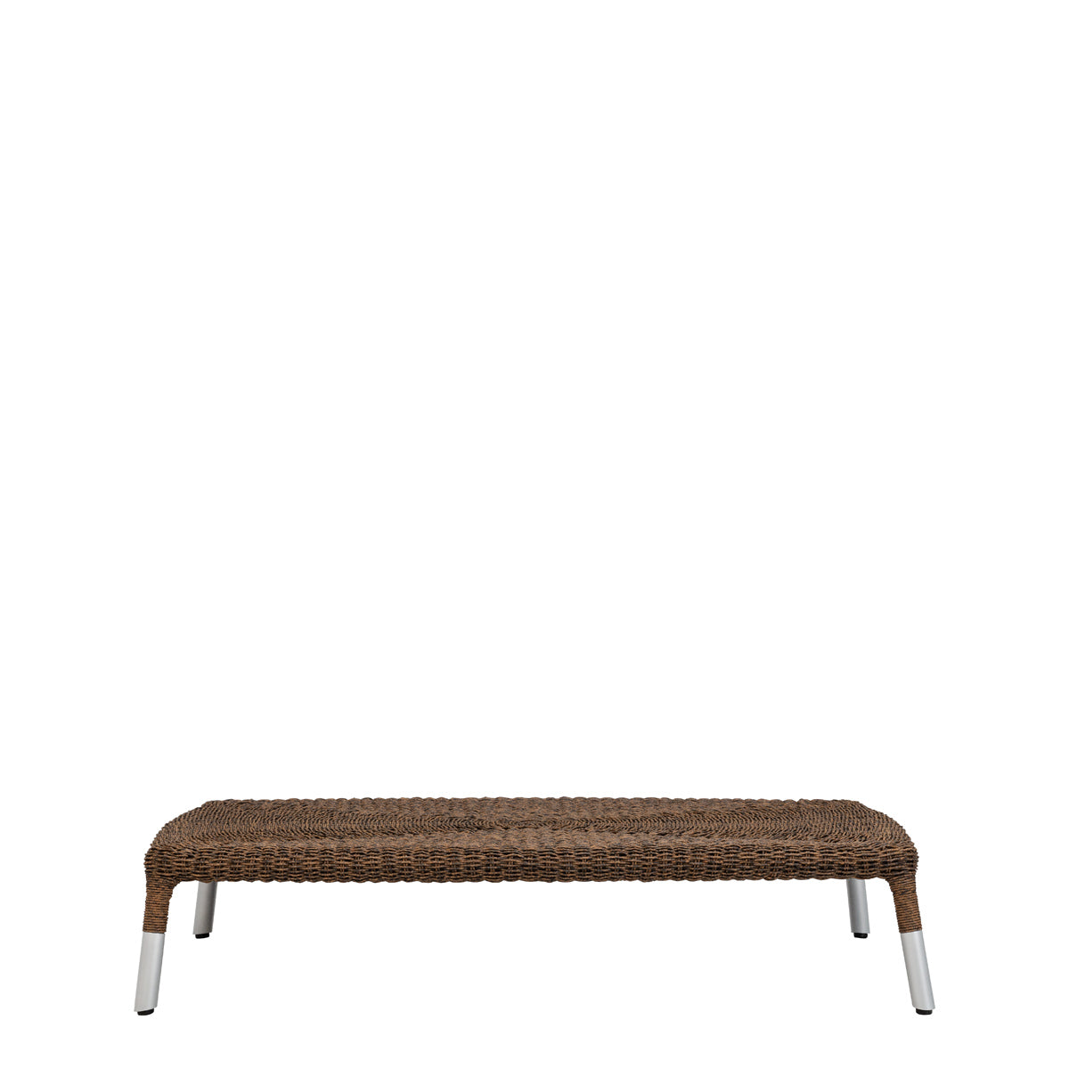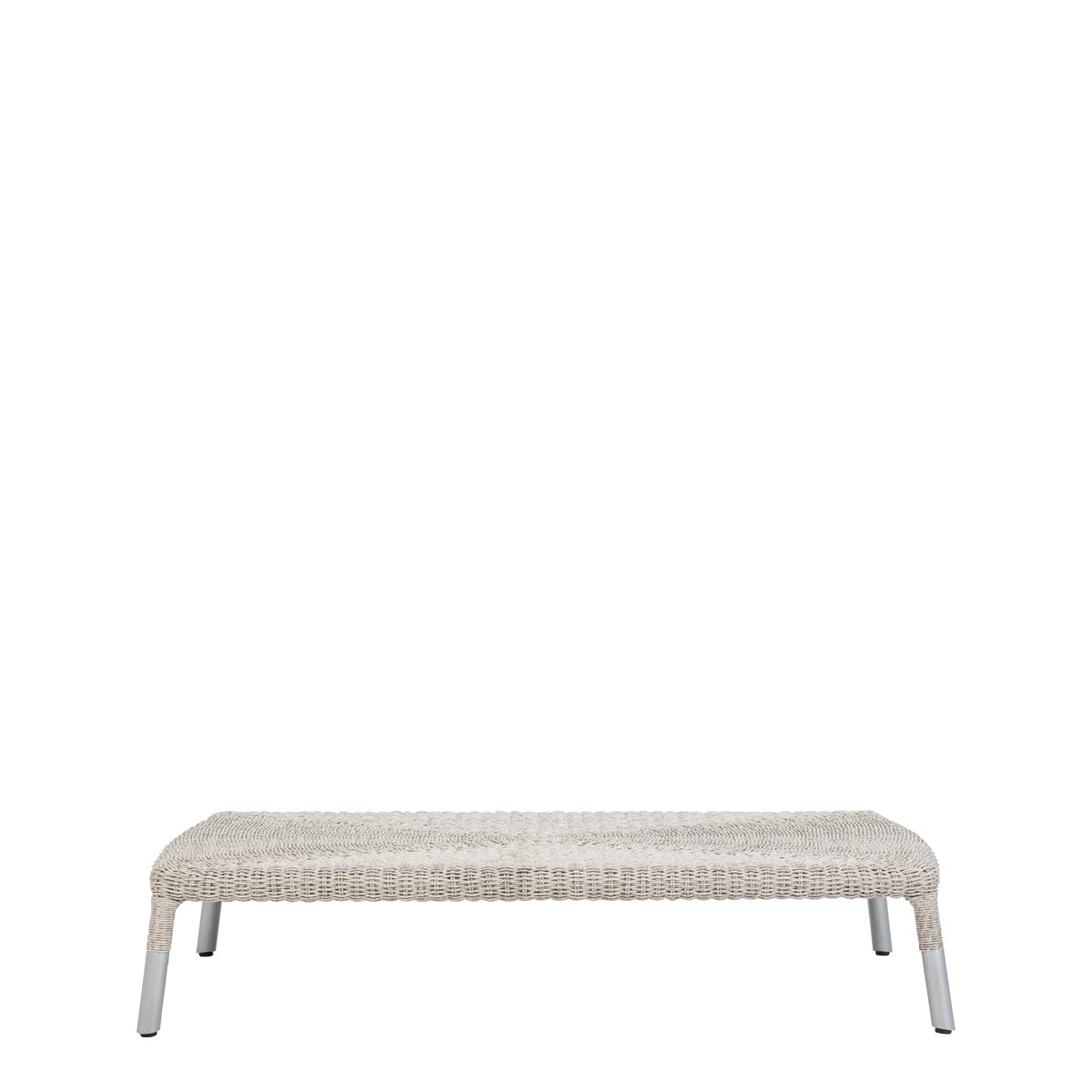 The Strada Ottoman/Table features a sturdy powder coated aluminum frame and intricately woven JANUSfiber, a material engineered to beautifully withstand exterior elements in a refined, natural fiber-like texture. The ottoman/table is exceptionally versatile in interior and exterior settings and is an ideal complement to the Strada three-seat sofa. An optional cushion is available for separate purchase. This item is final sale and not eligible for return.