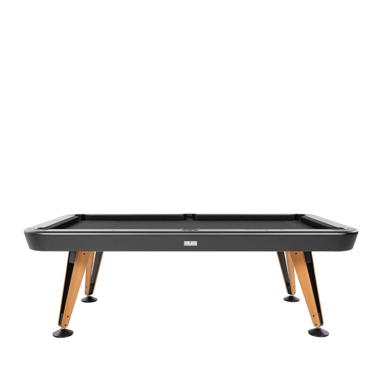 The Tangent pool table is a luxurious addition to JANUS et Cie's game collection. Elegantly designed, it doubles as a solid table surface with its optional three-piece top. The mobile Tangent Cue Rack enhances its utility and elegance, making it an ideal choice for sophisticated game rooms.