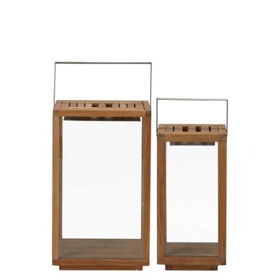 Our Teak Lanterns, with their clean lines and modern design, combine the warmth of wood and candlelight. Made from premium teak, tempered glass, and stainless steel, these lanterns are perfect for lighting pathways or stairs.