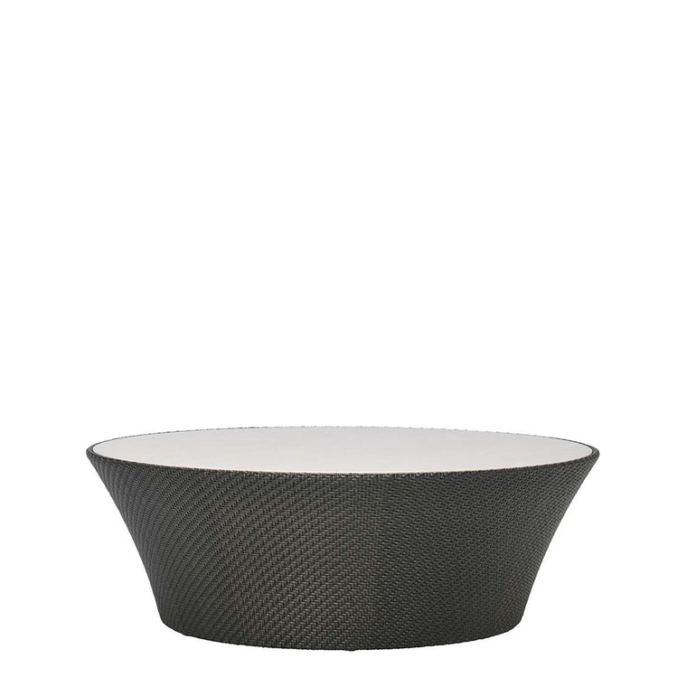 The Wing Rattan Cocktail Table Round is comprised of handwoven rattan over a powder coated aluminum frame. Interior use only.