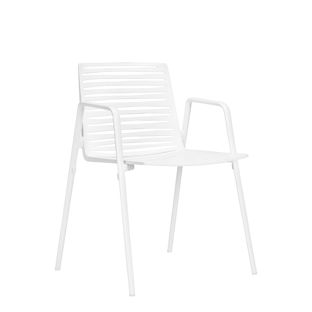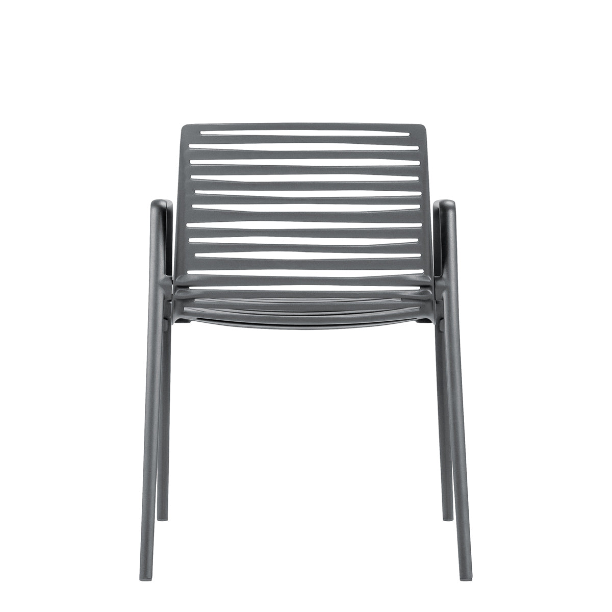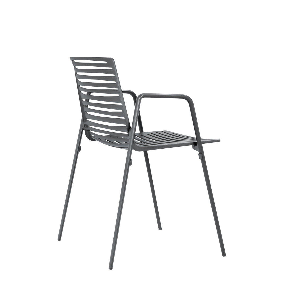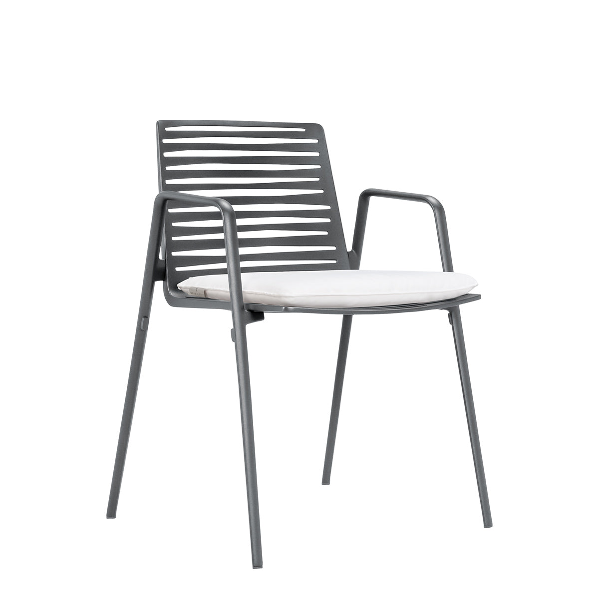 Zebra presents modernist designs with a twist of exotic inspiration. Its seating features graphic cutouts, reminiscent of a Zebra’s coat. The collection includes stackable chairs and versatile Up & Down tables with integrated wheels, crafted from powder coated aluminum and available in neutral colors.
