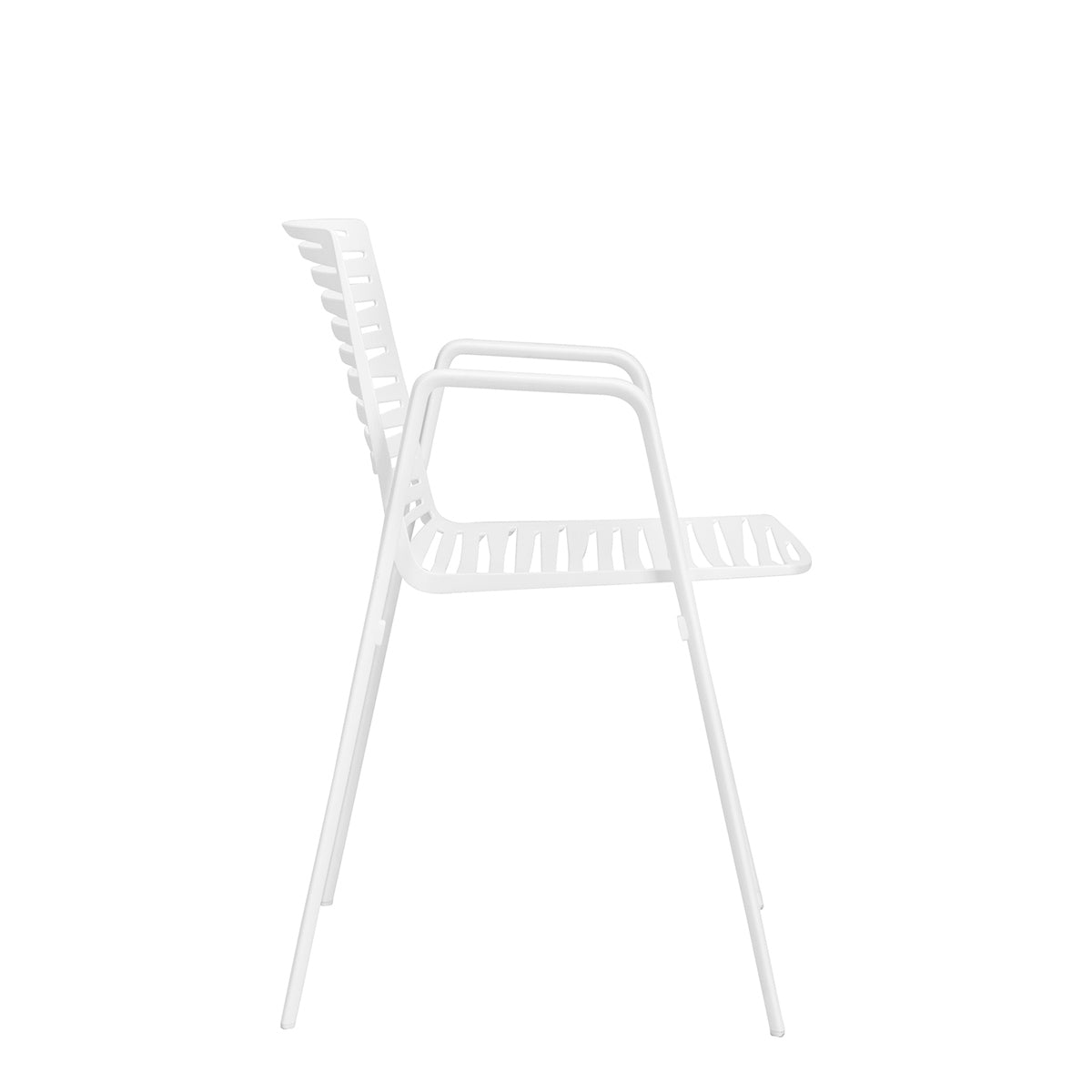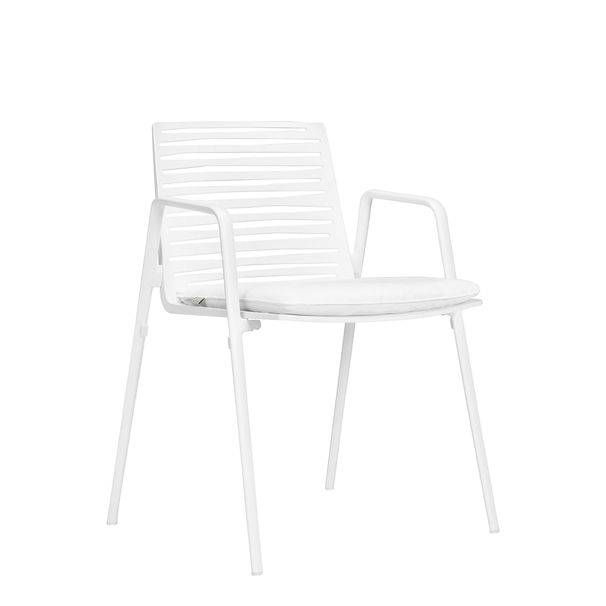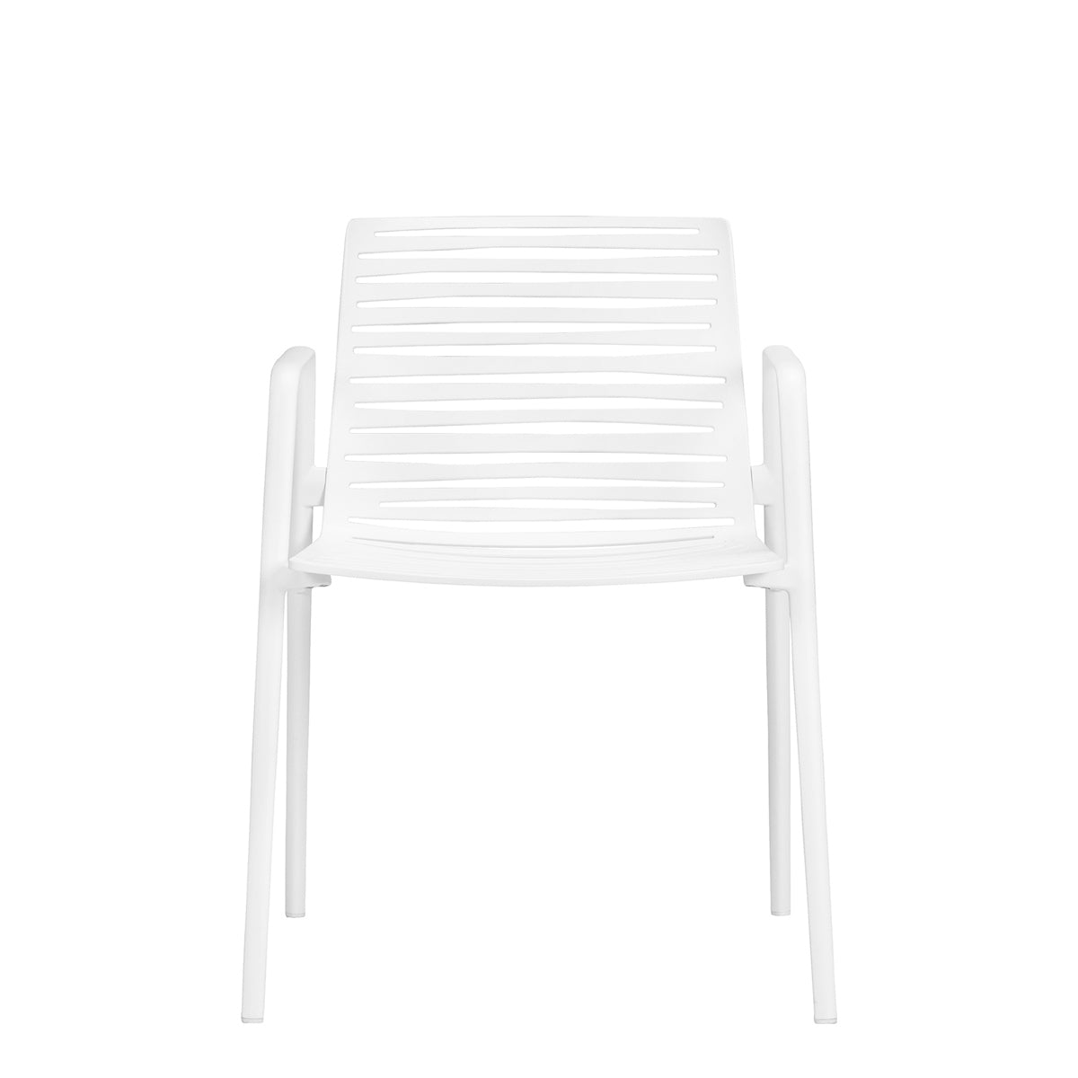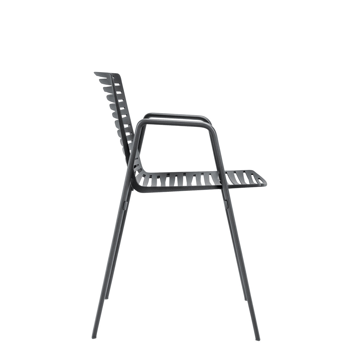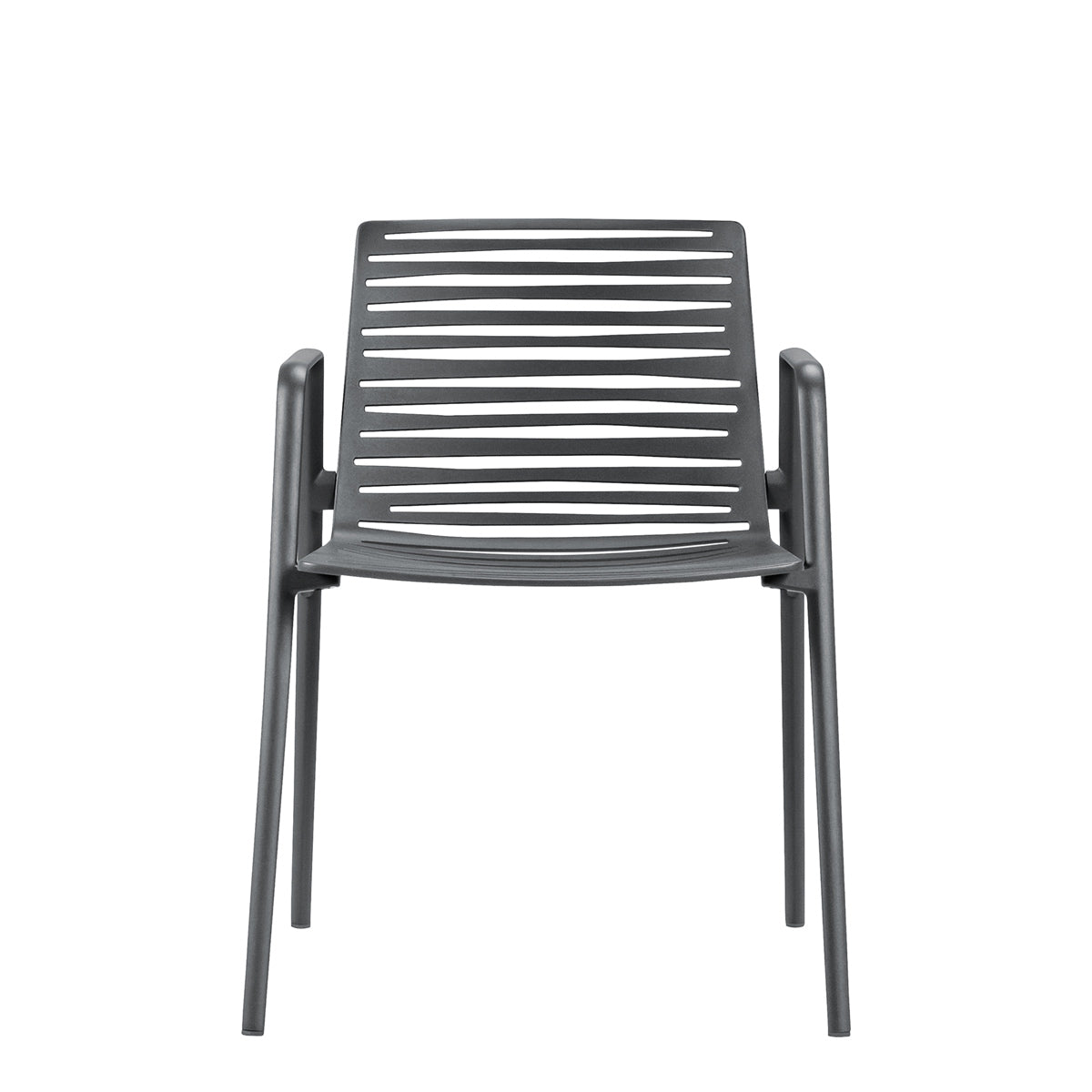 Zebra presents modernist designs with a twist of exotic inspiration. Its seating features graphic cutouts, reminiscent of a Zebra’s coat. The collection includes stackable chairs and versatile Up & Down tables with integrated wheels, crafted from powder coated aluminum and available in neutral colors.