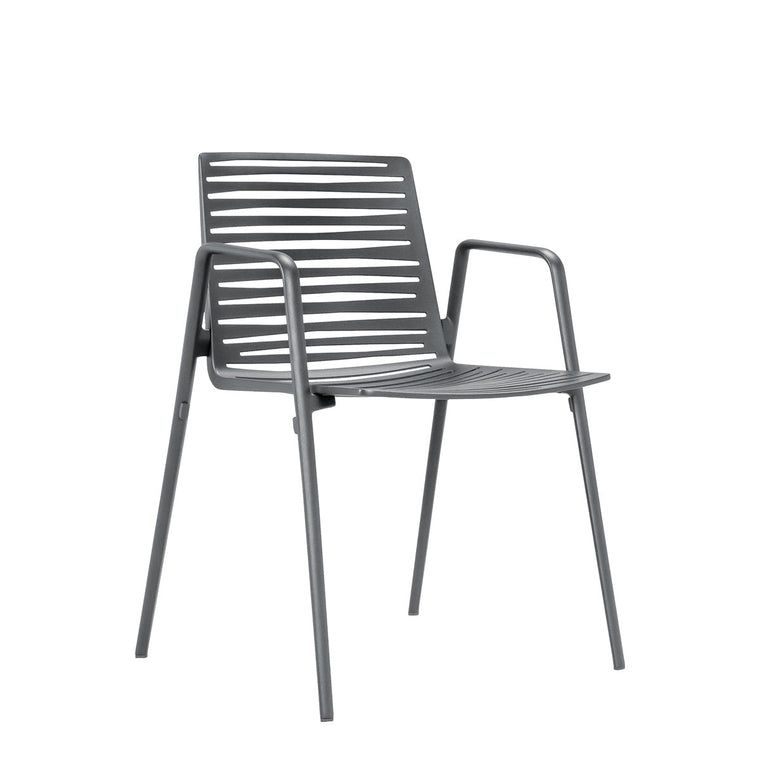 Zebra presents modernist designs with a twist of exotic inspiration. Its seating features graphic cutouts, reminiscent of a Zebra’s coat. The collection includes stackable chairs and versatile Up & Down tables with integrated wheels, crafted from powder coated aluminum and available in neutral colors.