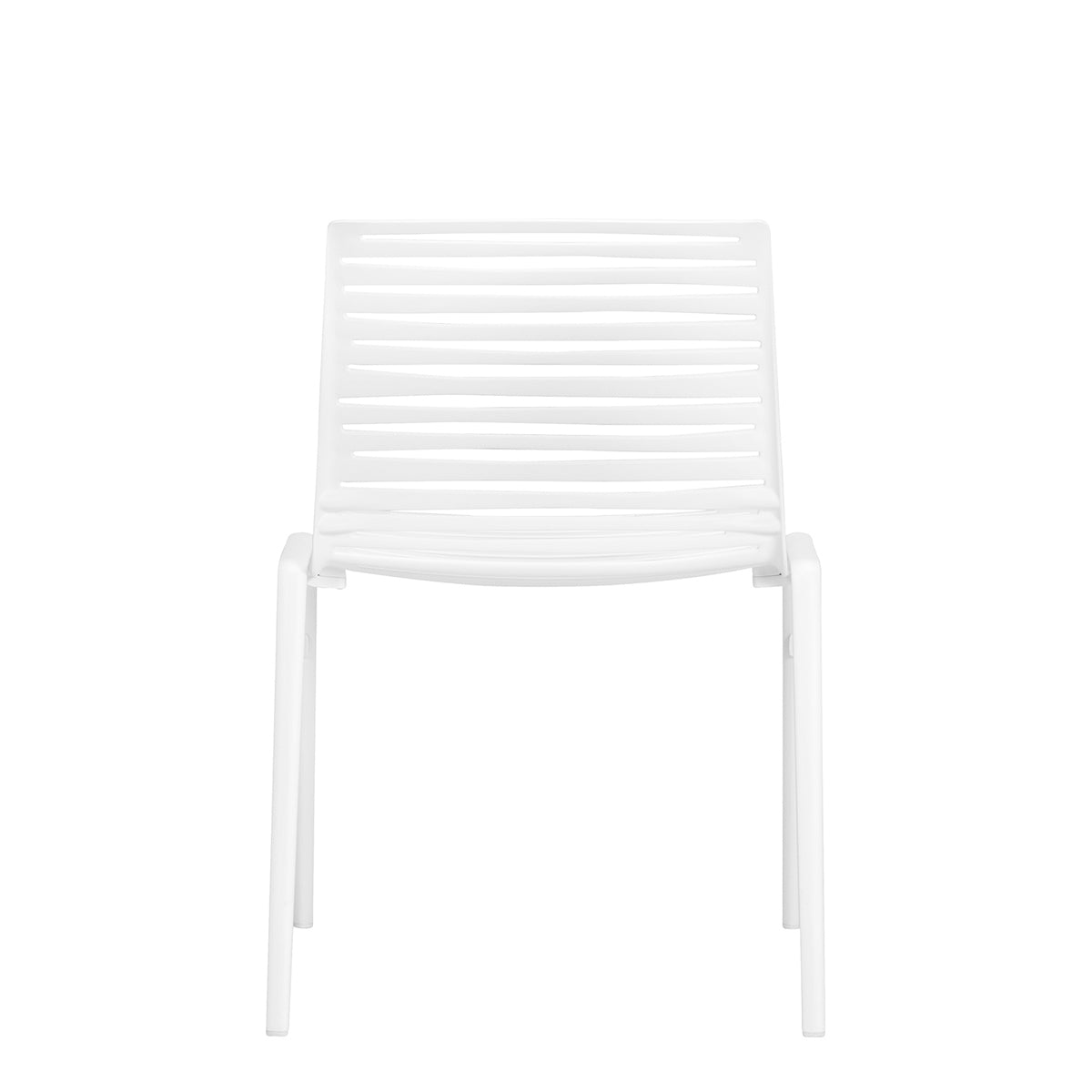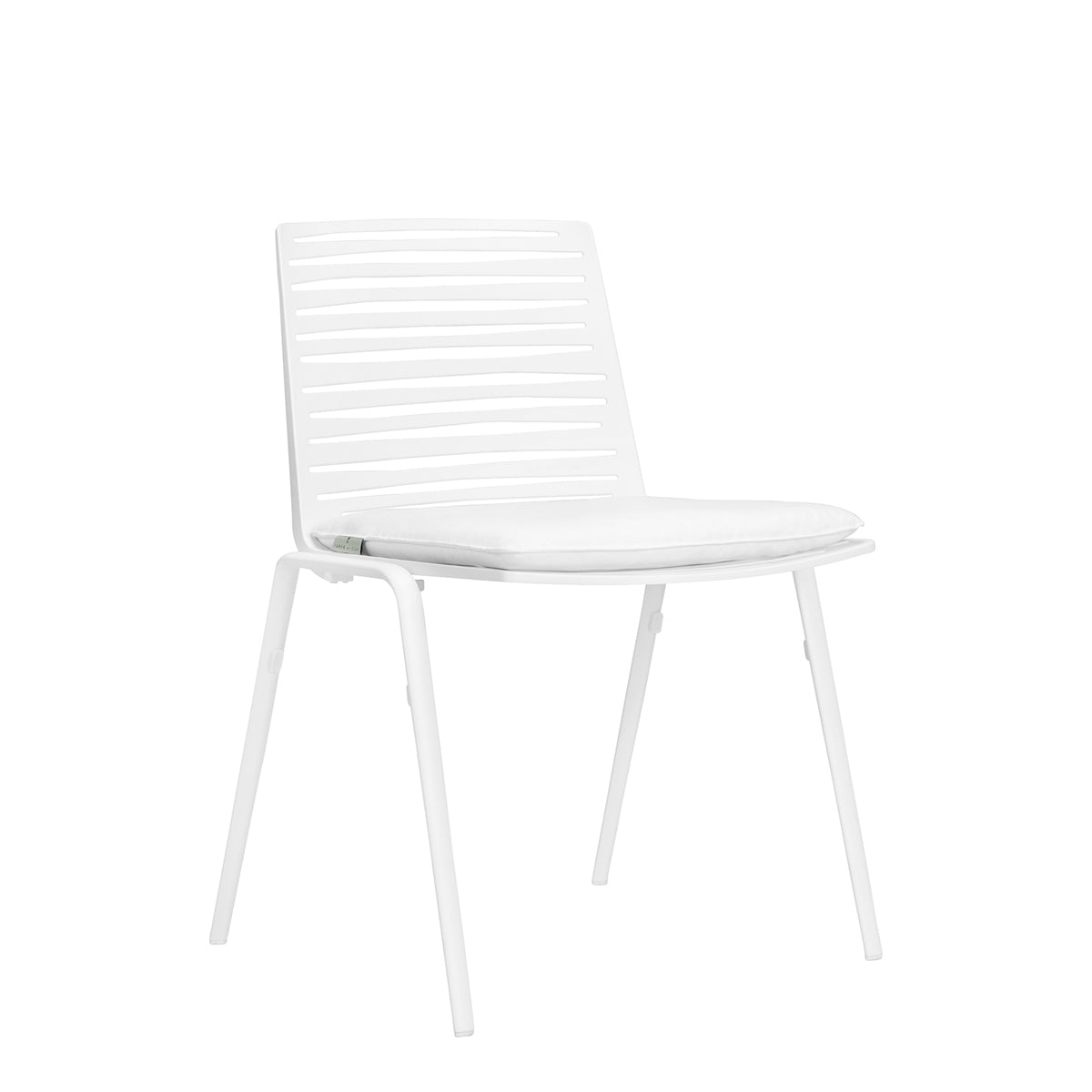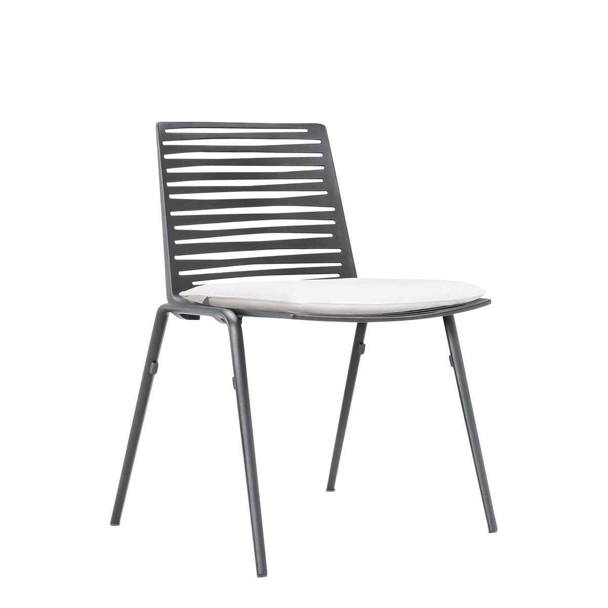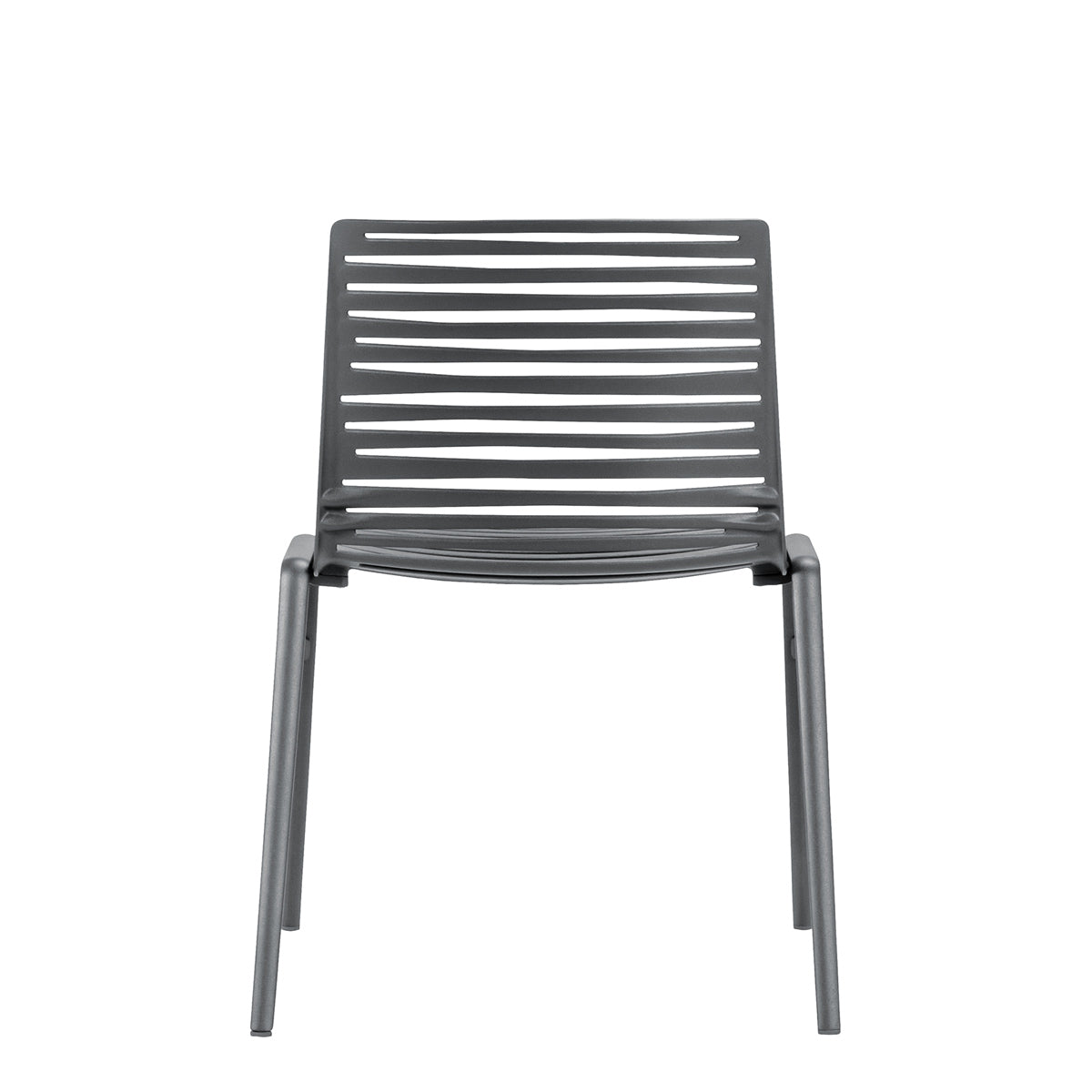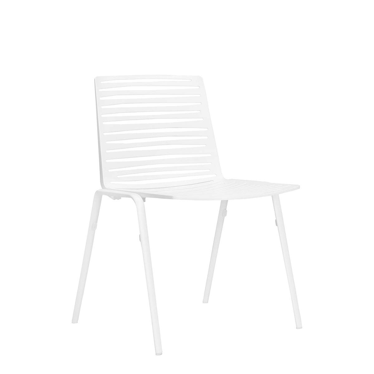 Zebra presents modernist designs with a twist of exotic inspiration. Its seating features graphic cutouts, reminiscent of a Zebra’s coat. The collection includes stackable chairs and versatile Up & Down tables with integrated wheels, crafted from powder coated aluminum and available in neutral colors.