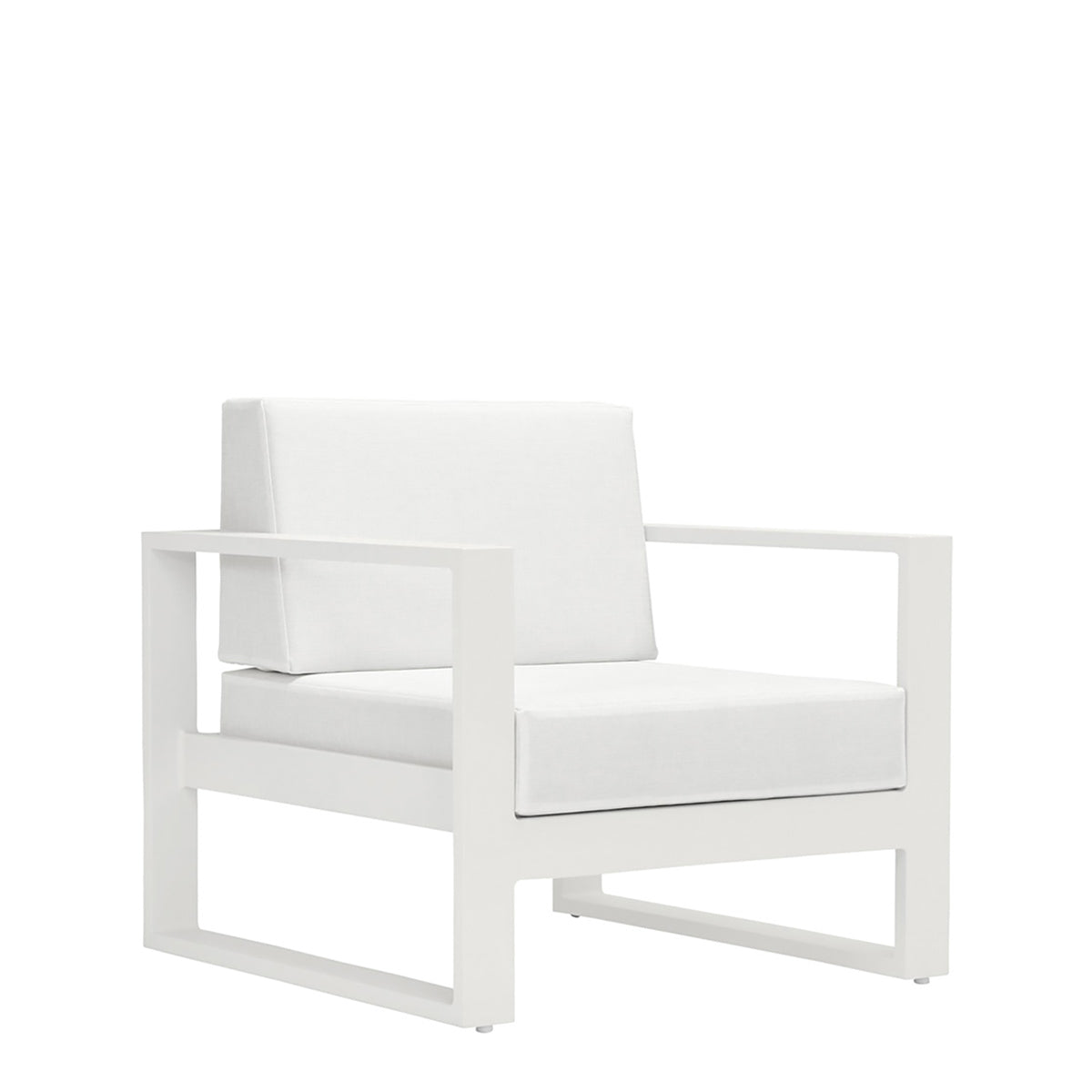 The Matisse Club Chair presents a clean, contemporary form with a spare yet substantial silhouette. An open, squared frame composes its legs and arms while a low slung profile and deep cushions offer exceptional comfort.